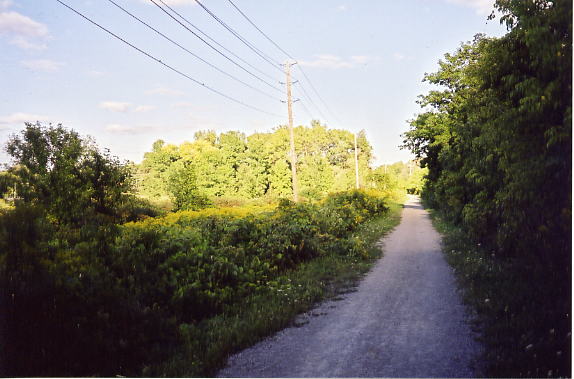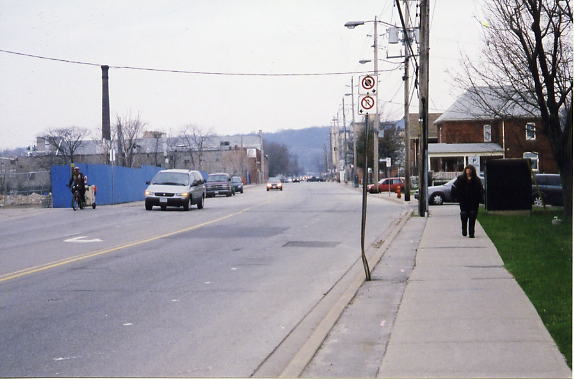 Looking westward into Dundas, near the intersection of Cootes Drive and Dundas Street. The roadbed is to the left. The H&D went up Dundas St to the intersection of Dundas and Main St.