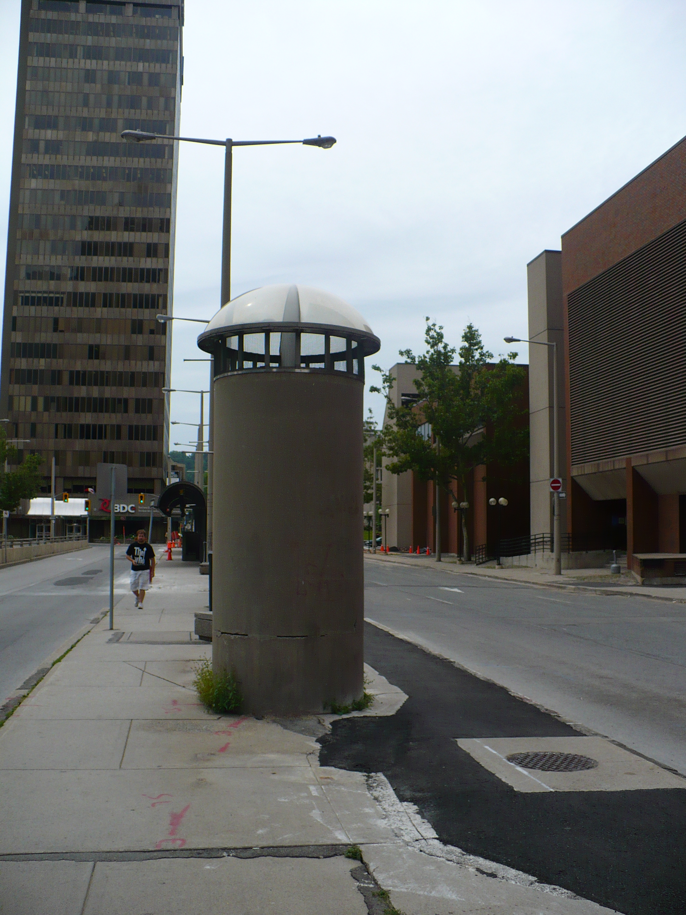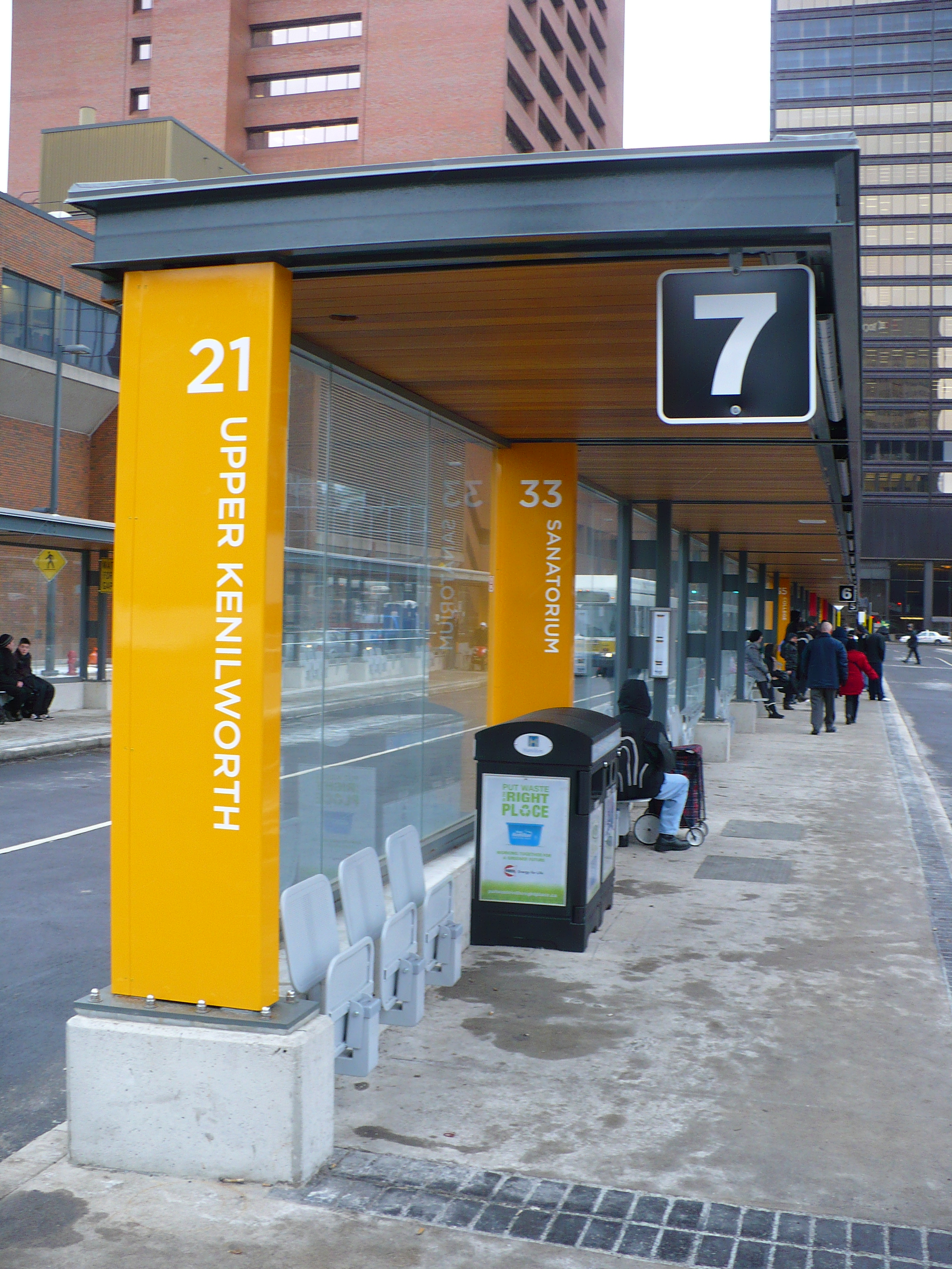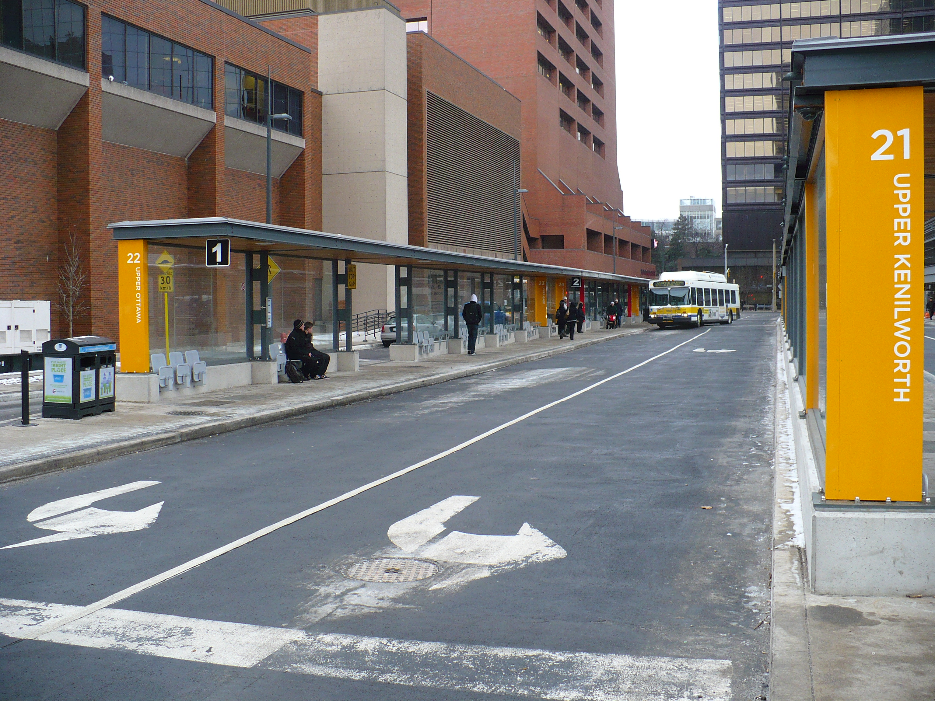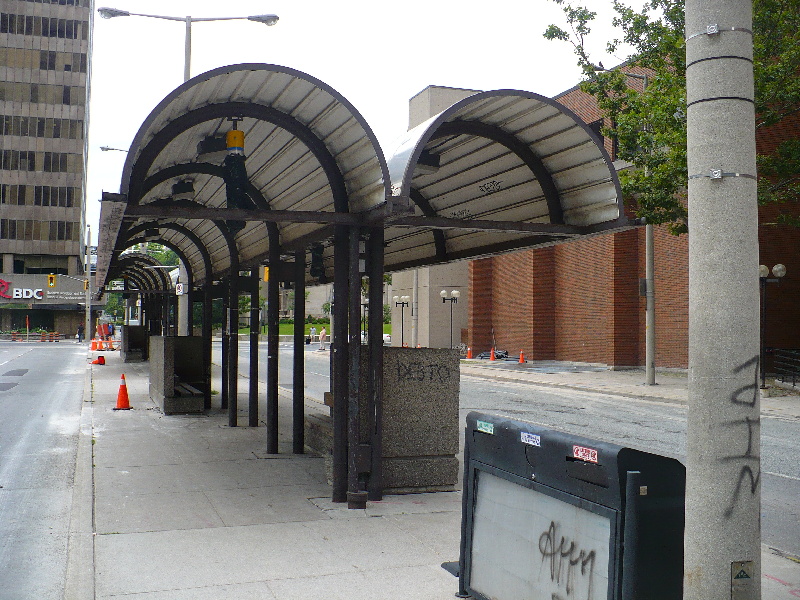 Bus shelters at south end of MacNab Terminal, Aug 8, 2009