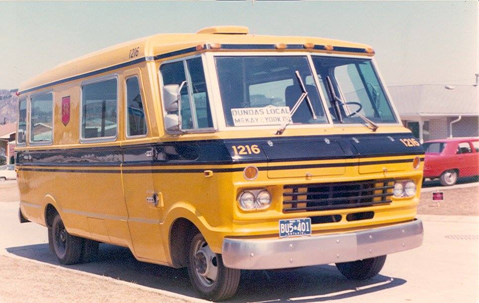 The HSR's first modern Minibuses were a pair of ex-GO Transit Rek Vee Club cars. These minibuses were originally built as part of GO Transit's Dial-A-Bus service, a door-to-subway transit service that started in the then low density suburbs of North York (now part of Toronto) in 1973. For this new service, a modified fibreglass camper body was attached to a Dodge motor home chassis, with seating for 17 or 25 riders, depending on configuration. More info on the Dial-A-Bus service is available on the Transit Canada website.