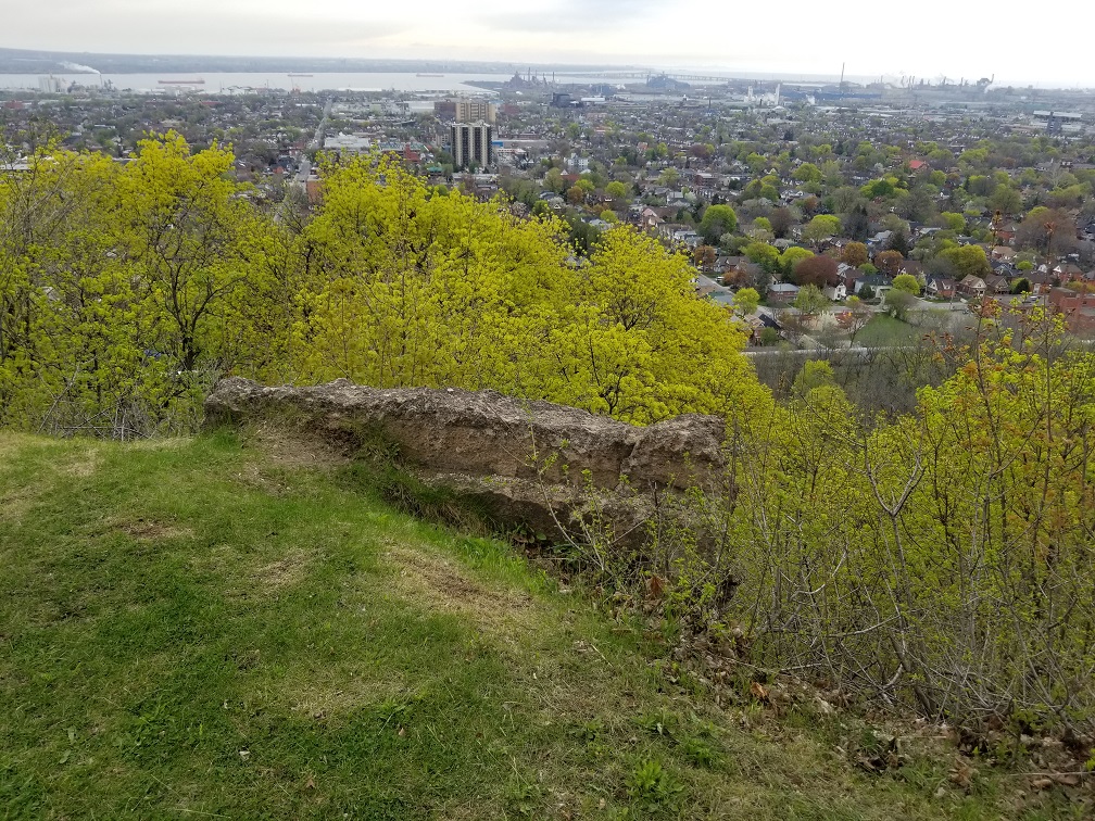 A few surviving pieces of the eastern observation deck are still in place at the top of the escarpment. May 16, 2019