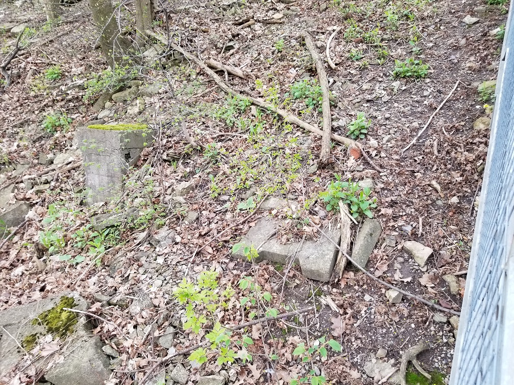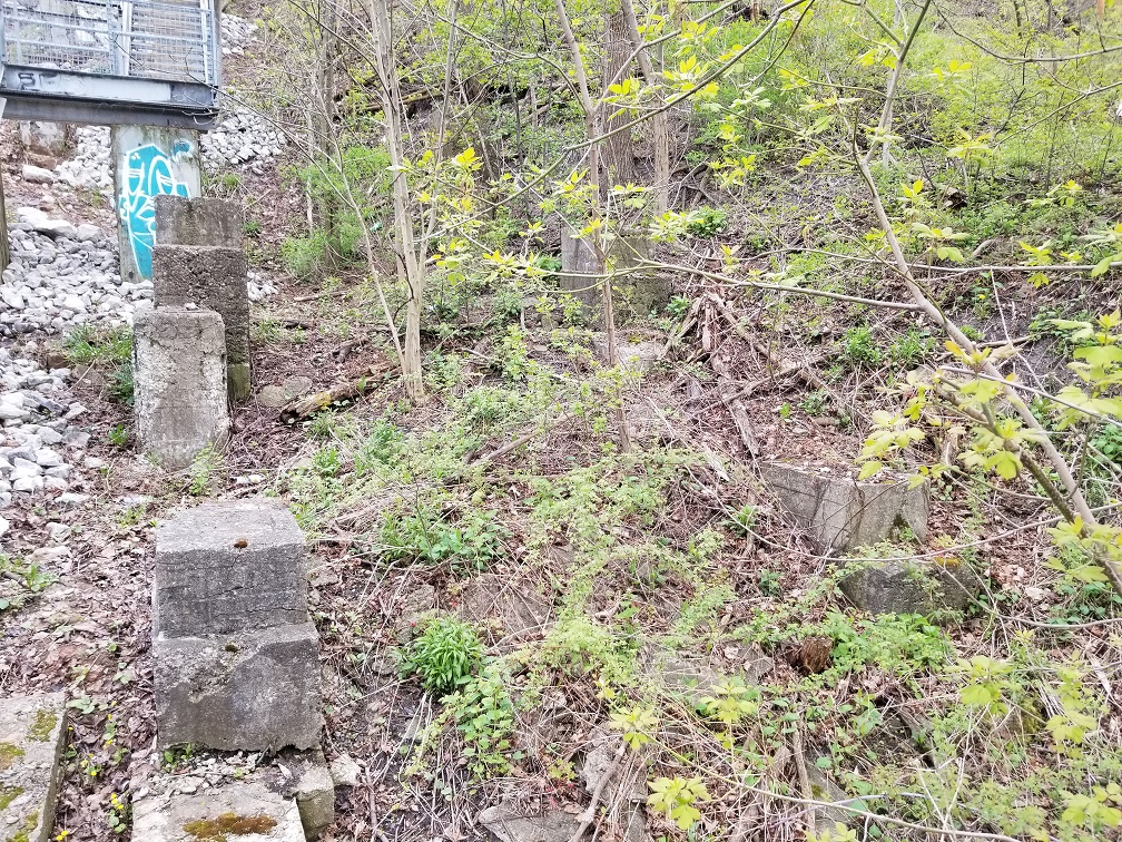 Old concrete bases along the east side of the Wentworth stairs. May 16, 2019