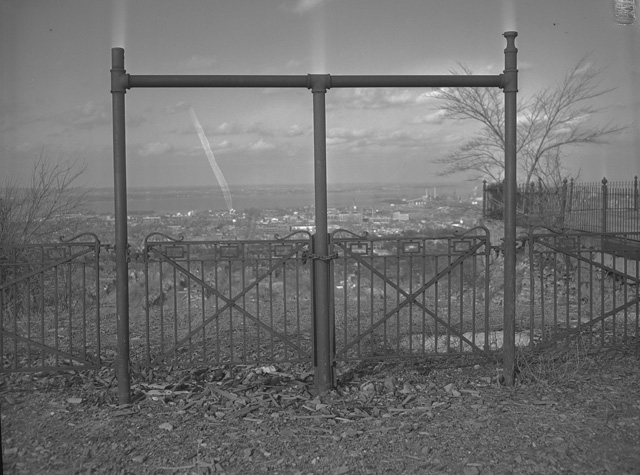 These are the old gates at the top of the East-End Incline, on March 6 1954. The gates and fencing were left behind for safety reasons when the East-End Incline was dismantled in 1949. (Photo courtesy of the Hamilton Public Library, Local History & Archives, used with permission)