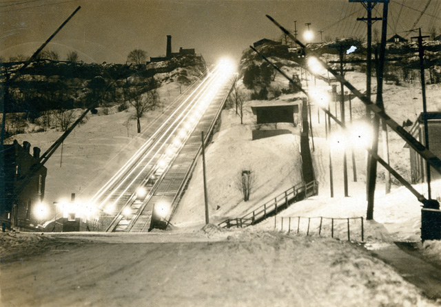 A time-lapse night shot of the East-End Incline sometime in the 1920s. (Photo courtesy of the Hamilton Public Library, Local History & Archives, used with permission)