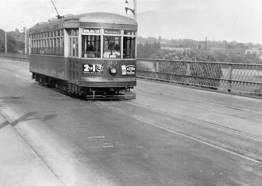 HSR #518 on Kenilworth south of Roxborough, July 6 1950. (Photo by Dennis Schmidt, from Dave’s Electric Railroads, used with permission)