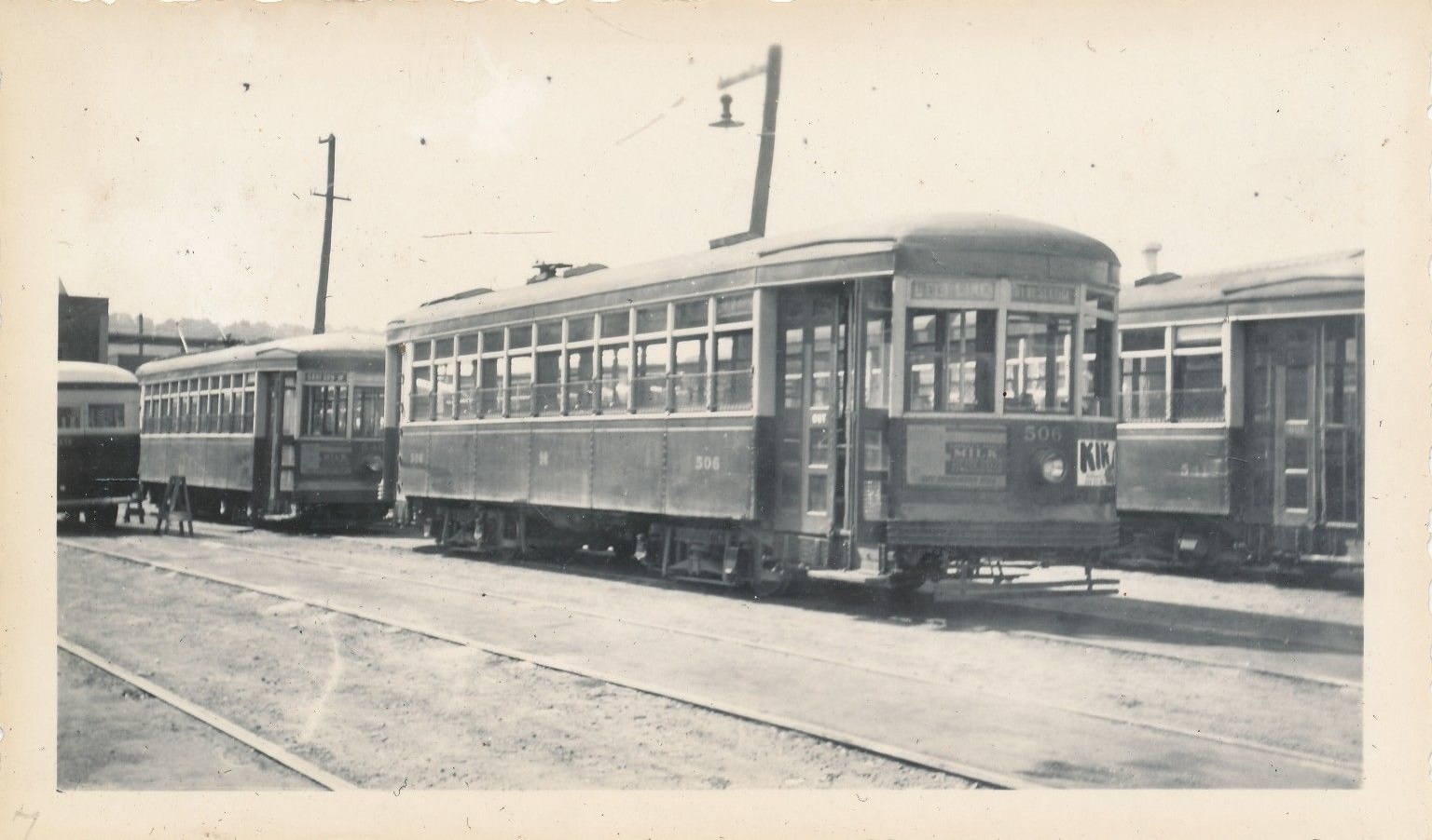 HSR #523 in the Sanford yard, date unknown. 523 was the only NSC to not last till the end of streetcar service, as it was destroyed in a collision on Burlington St in June of 1950 (From the Stephen M. Scalzo collection, used with permission)