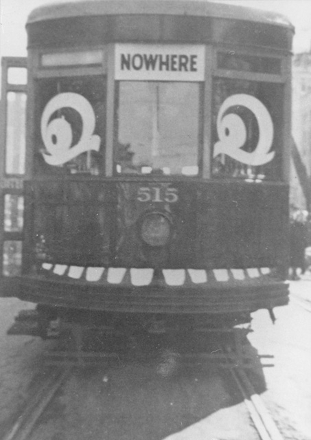 HSR #515 is decorated as part of the streetcar farewell on April 6, 1951. (Photo courtesy of the Hamilton Public Library, Local History & Archives, used with permission)