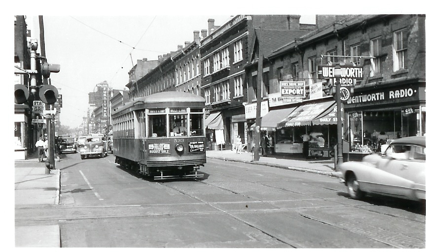 An unknown NSC car on King approaching Wentworth. (From Dave’s Electric Railroads, used with permission)