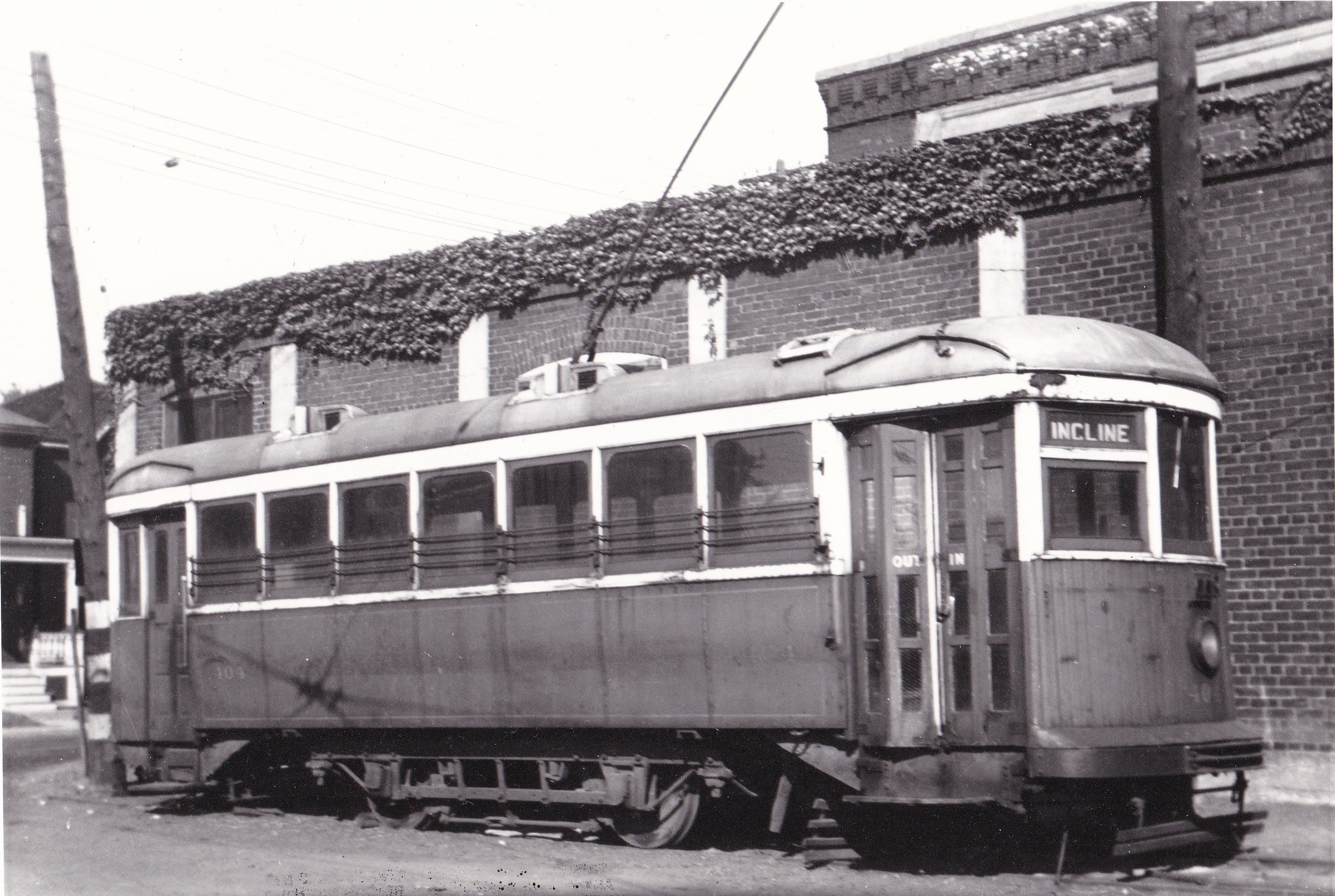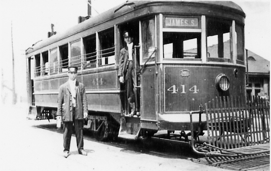 HSR #420 at the Hamilton & Barton Inclined Railway on James St South, date unknown. (From the Stephen M. Scalzo collection, used with permission)