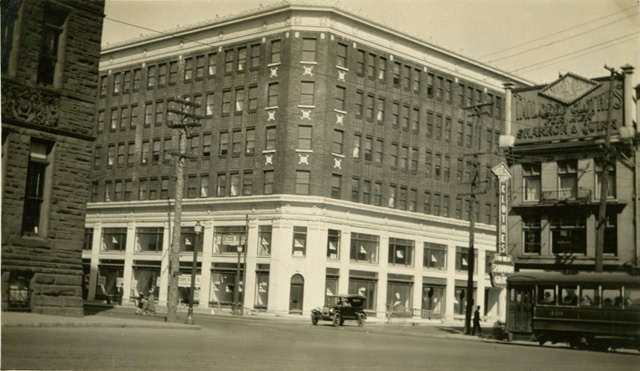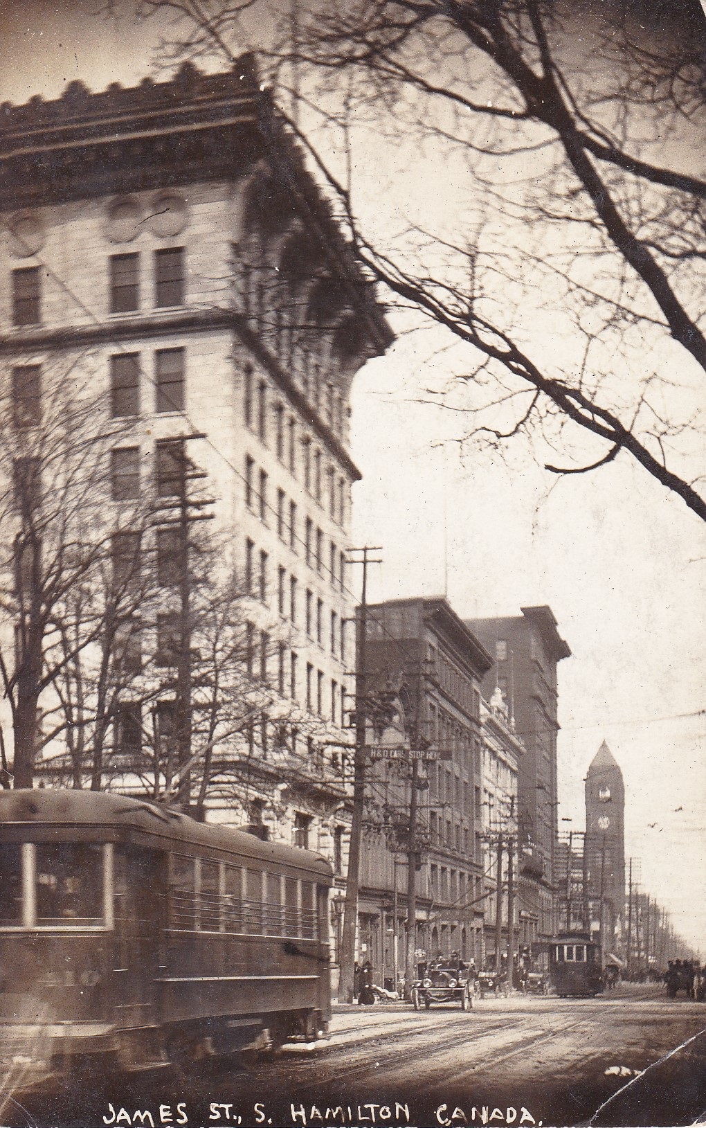 HSR #416 heading northbound on James at York in the Spring of 1924. (The Lister Block has been rebuilt but is still empty). (Photo courtesy of the Hamilton Public Library, used with permission)