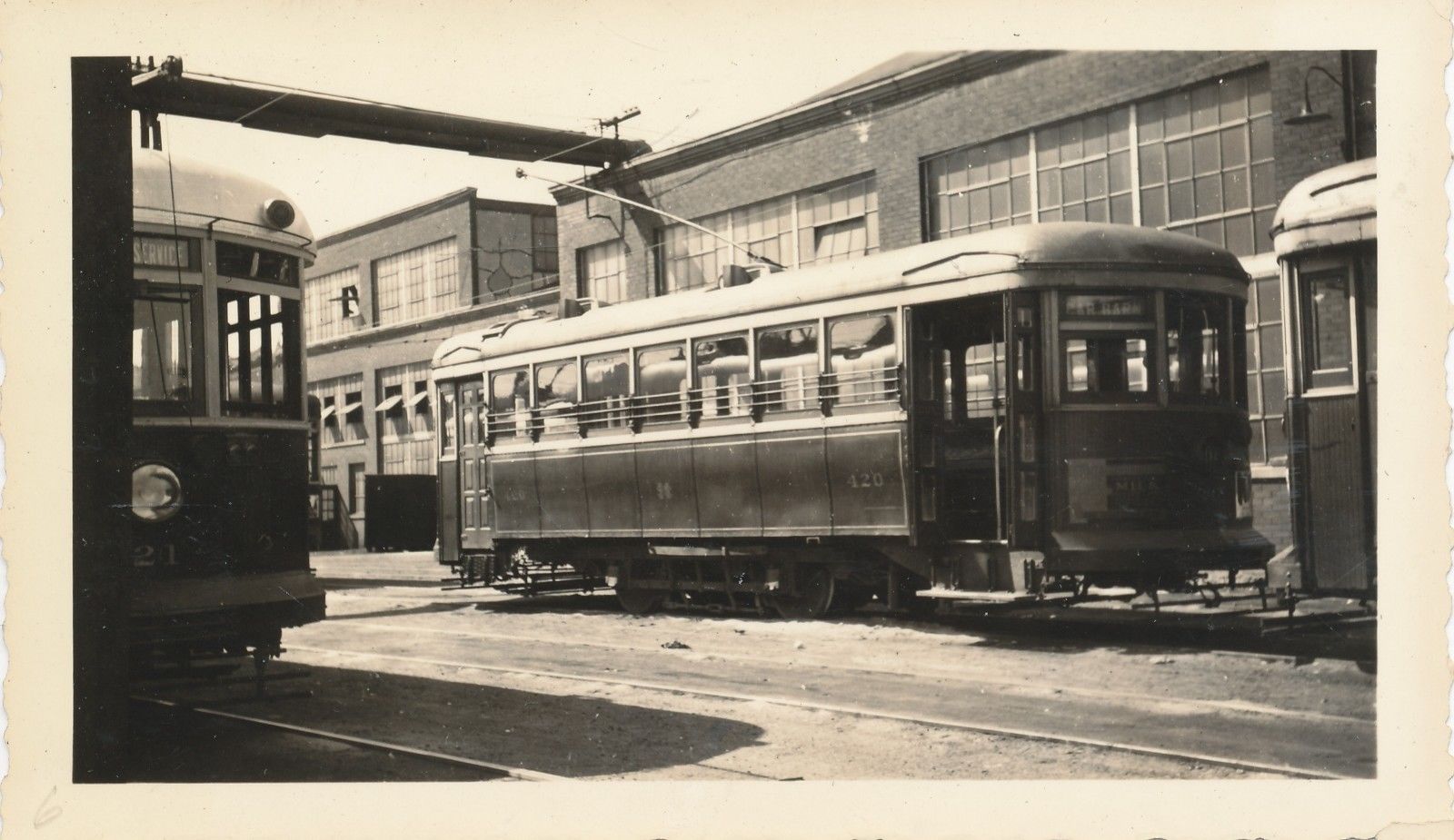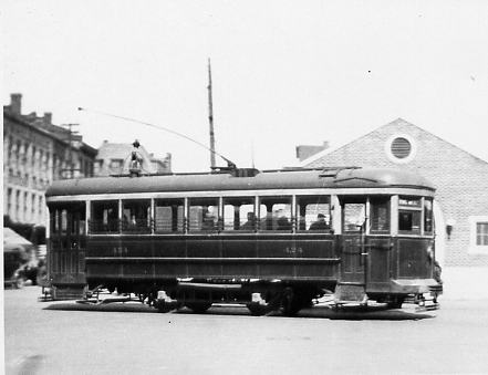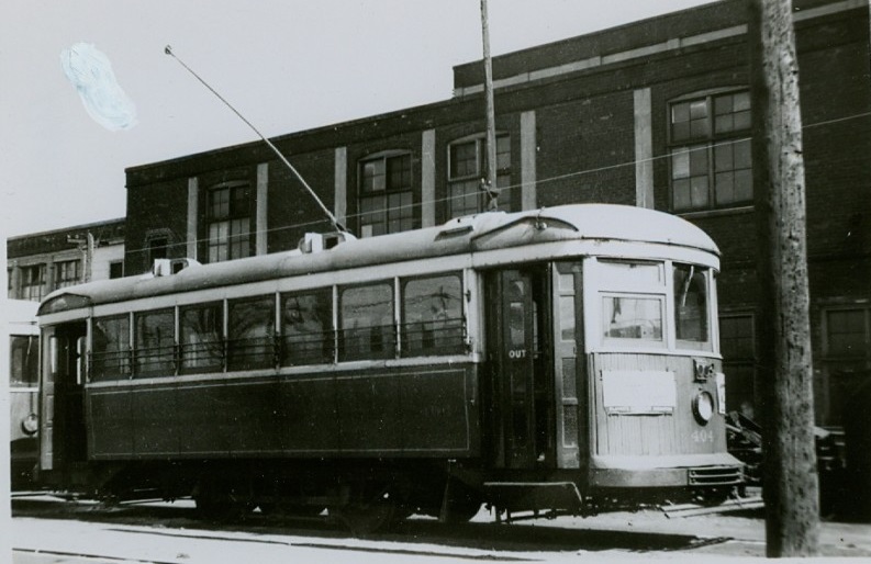 HSR #404 in the Sanford Yard, September 1 1939. This car served as a training car when it was rebuilt in 1927 to simulate the controls of the NSC 500 series streetcars, to give drivers some experience with the new equipment.(From Dave’s Electric Railroads.)