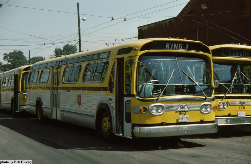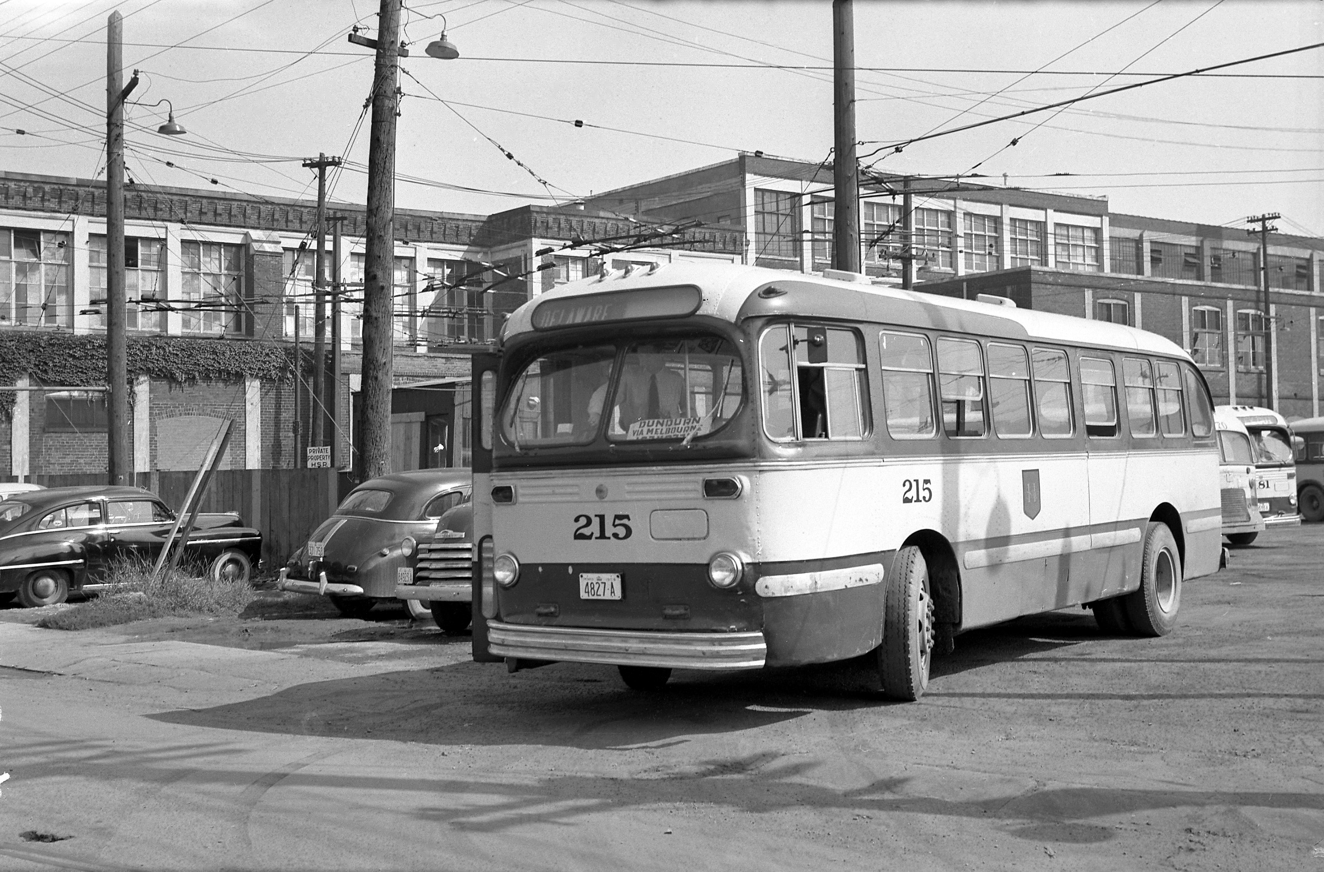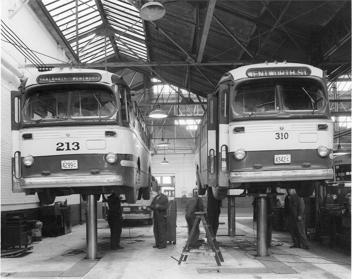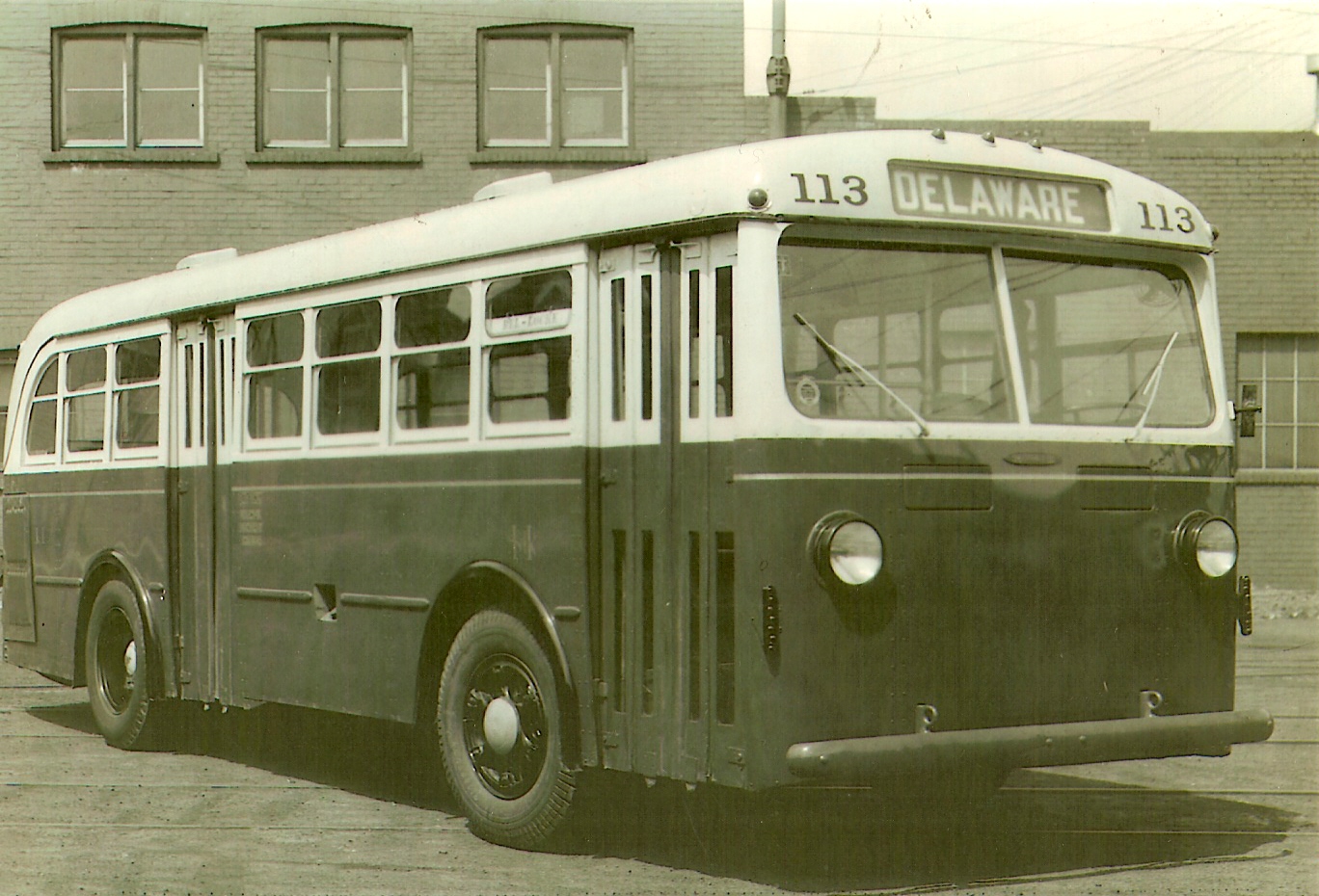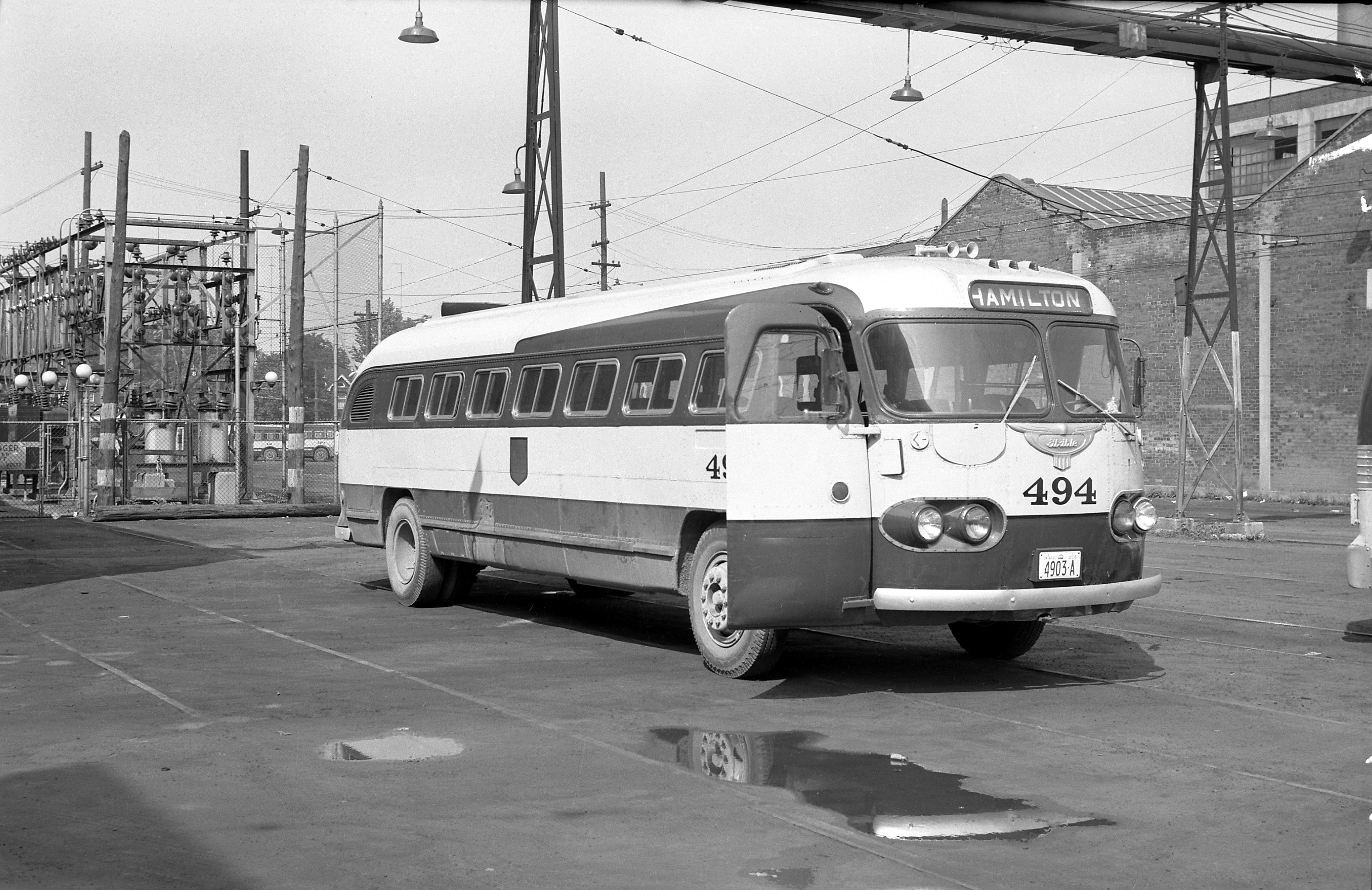 Bus service had begun in Hamilton in 1926, but large numbers of buses were not purchased until WWII. As the war progressed, more buses were bought to increase service, while several streetcar routes were discontinued. The HSR was purchased by Canada Coach Lines in 1946, at which time the HSR had 70 streetcars and 83 buses. The CCL retired its own bus maintenance facilities in favour of the Sanford Shops.