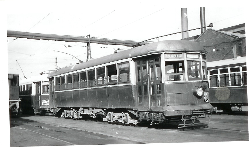HSR #50, probably inside the Inspection barn at the East Barn. The caption reads ‘13276 Hamilton St Ry. Single Truck Motor Pas. Car. #37-50. July 1920’