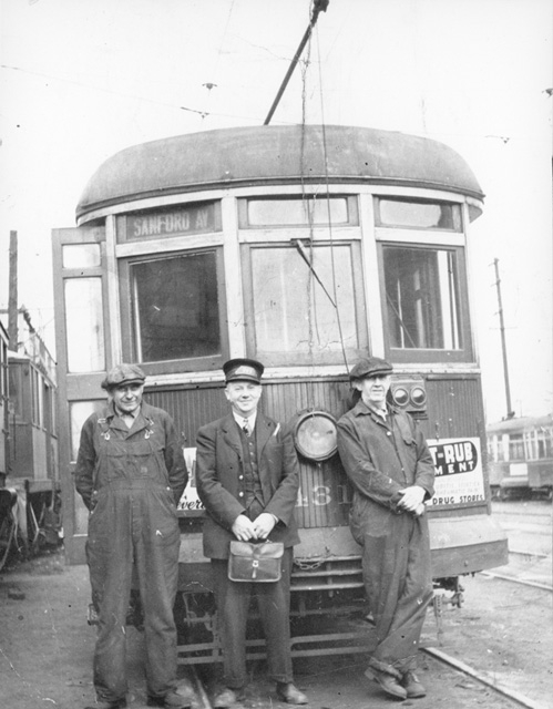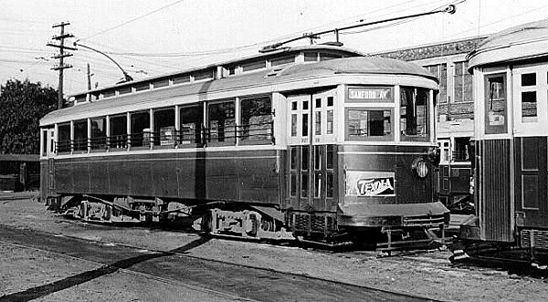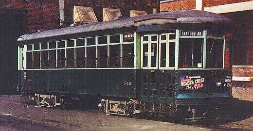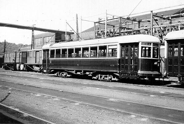 An unknown Preston DT car (possibly 441) at Sanford yard. (From Dave’s Electric Railroads.)