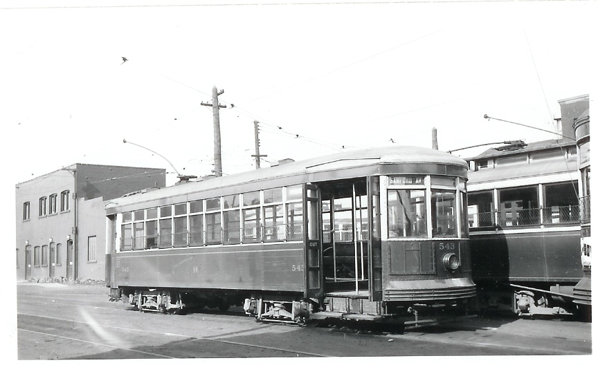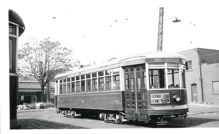 HSR #161 inside the Sanford shop, 1955. Photo by Hamilton Street Railway