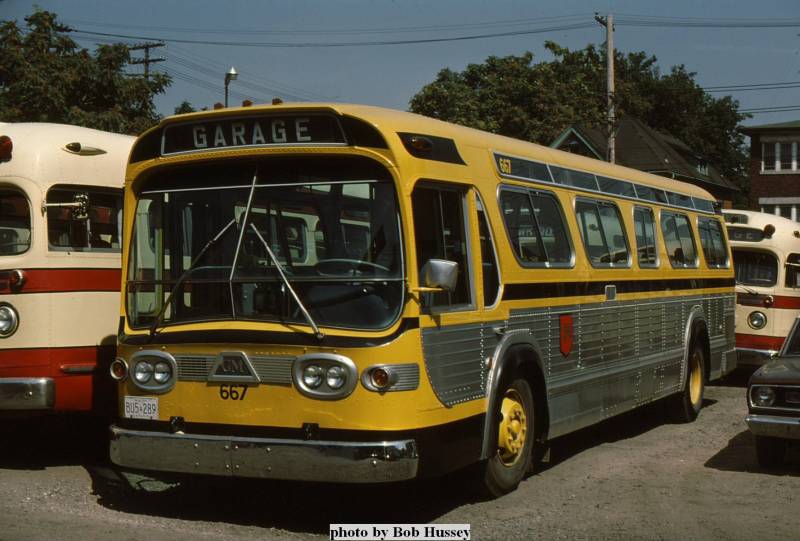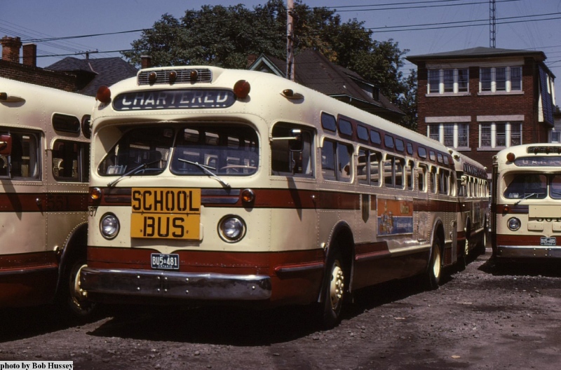 HSR #492 at the Sanford yard, 1956. This is a Twin Coach 41-S, originally built as Erie Coach Lines #42 in 1947. The ECL was bought by the Canada Coach Lines on Dec 10, 1948, and ECL #42 became CCL #825. In 1955 it was transferred to the HSR, becoming #492. At some point it went back to the CCL, but kept its HSR number. Note the rollsign for 'Galt Hospital.' During the 1950s, CCL not only operated intercity bus service, but ran the public transit services under contract in Galt and in other Ontario communities. At first glance, I would guess that this HSR bus has been borrowed and fitted with a rollsign for service in Galt, before the CCL acquires it for a second time. (Photo from mbernero's Flickr page, used with permission.)