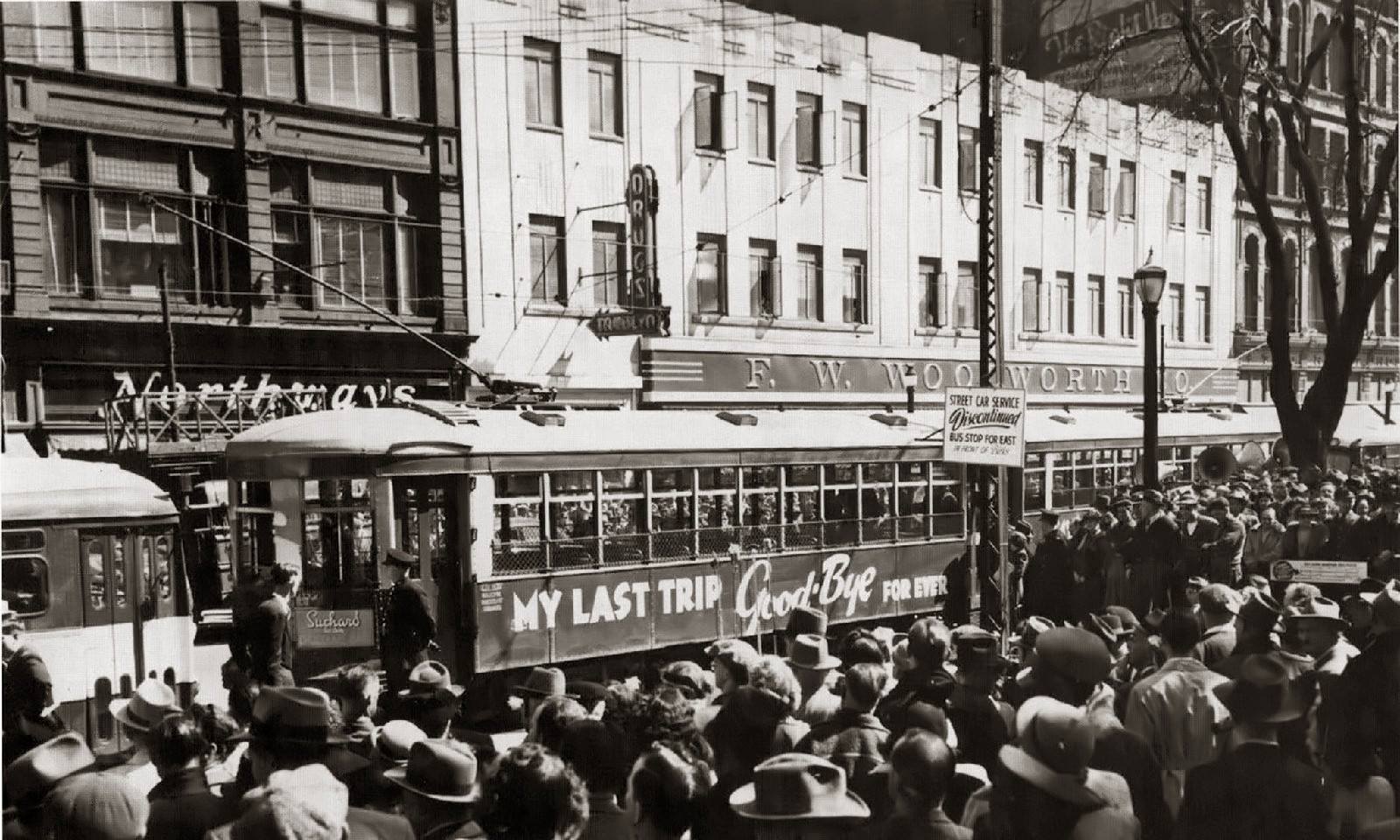 Hamiltonians say goodbye to the streetcars, April 6, 1951. (Photo courtesy of the Hamilton Street Railway)