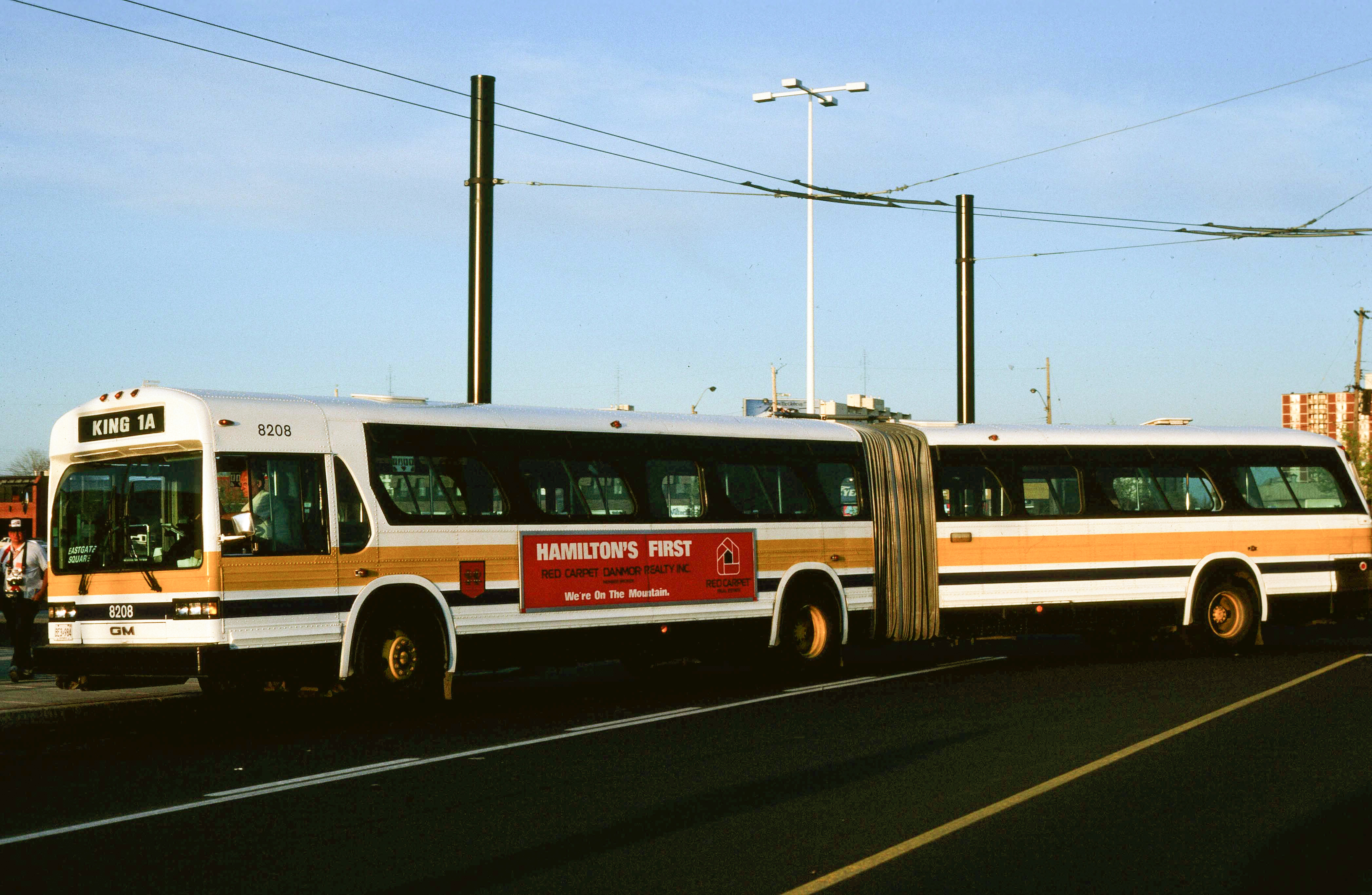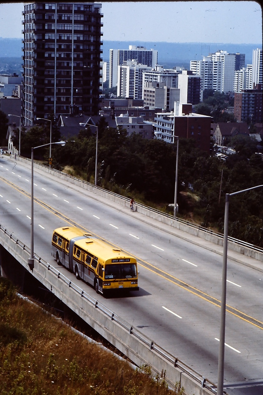 The HSR had already been looking into articulated buses in the late 1970s. On May 19, 1977 a leased articulated bus from AM General was tested in the Sanford yard, the downtown core and up and down the Jolley Cut. No purchases were made from AM General, but the HSR signed on to the GM Artic plan on March 20, 1979.