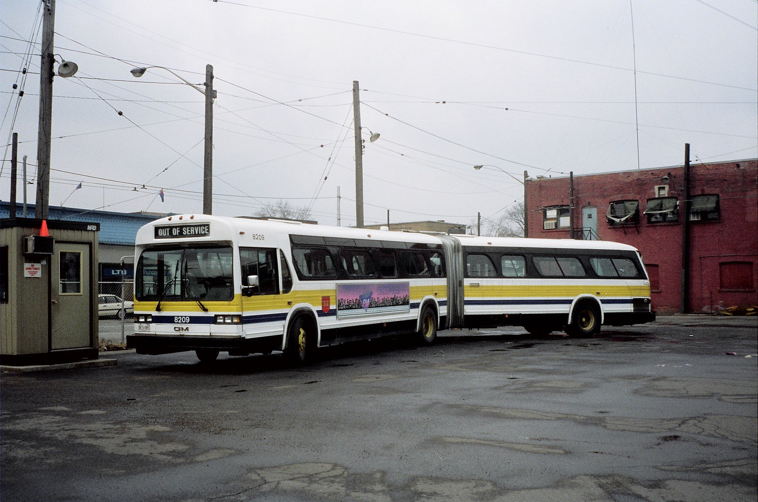 HSR #8209 at the Sanford Bus Garage, April 15 1989. (Photo by Paul A. Bateson, used with permission)