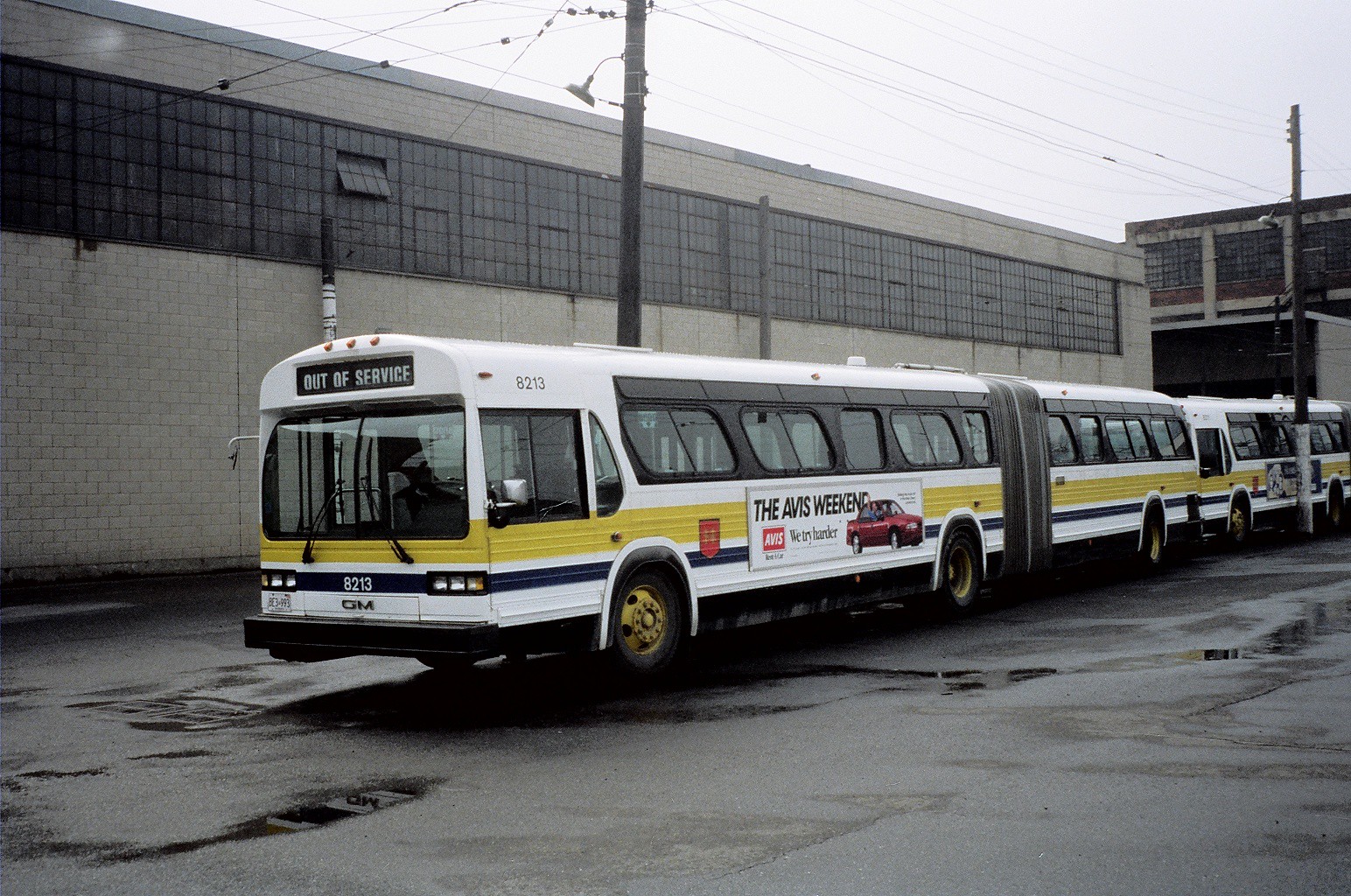 HSR #8213 at the Wentworth Bus Garage, June 13 1998. (Photo by Paul A. Bateson, used with permission)
