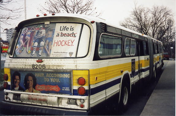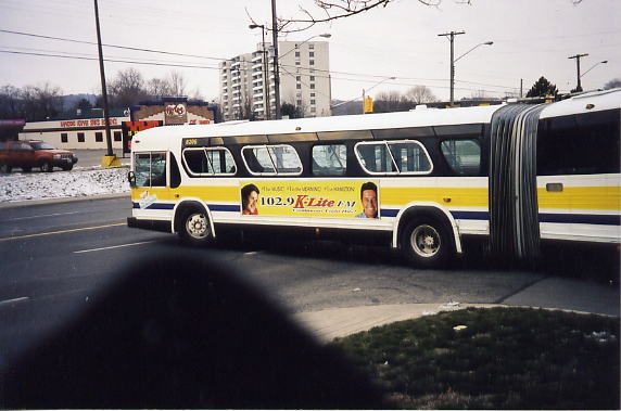 Take one GM Classic, two GM New Looks, one huge accordion, and mix well. What do you get? The TA60-102N, (Transit bus, Articulated model, 60 feet long, 102 inches wide, Not air-conditioned) also known as the GM Artic, but best known to Hamiltonians as the Bendy Bus.