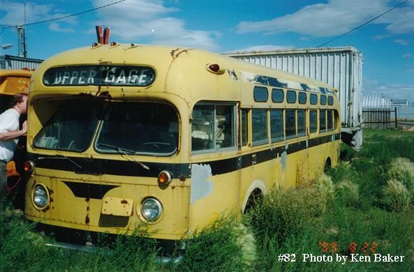This photo of HSR #82 was taken at Vic's Used Auto Parts in Swift Current, Saskatchewan on Aug 22, 1999. How this bus ended up so far from Hamilton is a mystery. (Photo by Ken Baker, used with permission. From Barp.ca)
