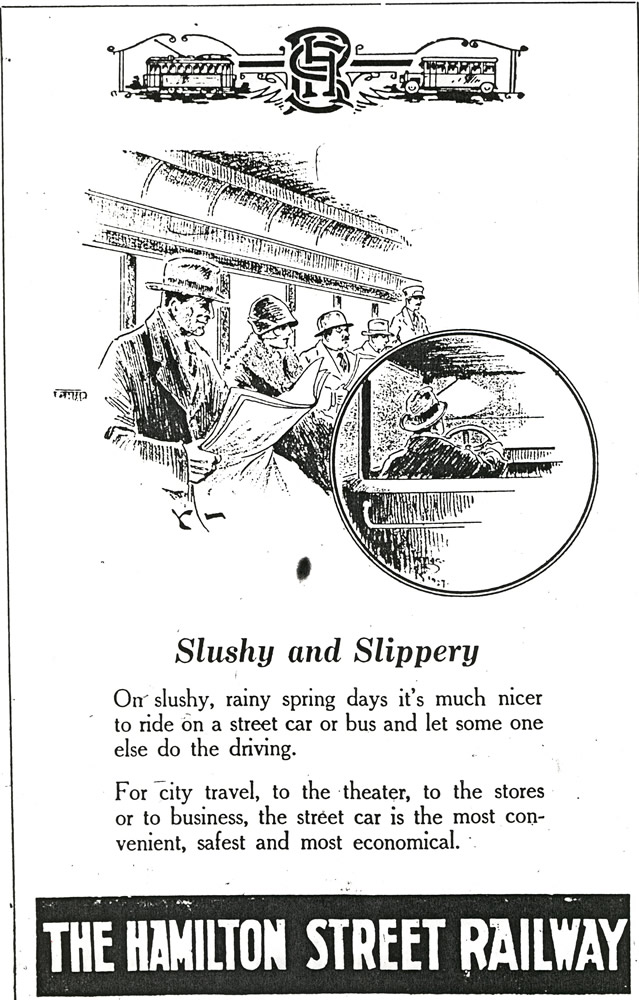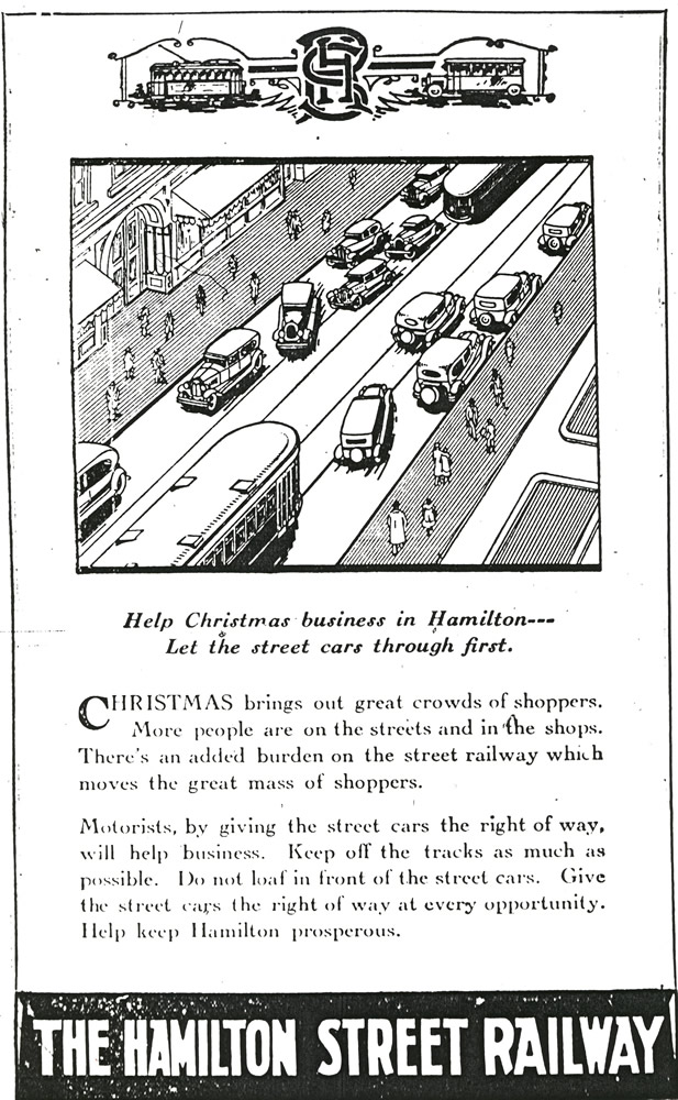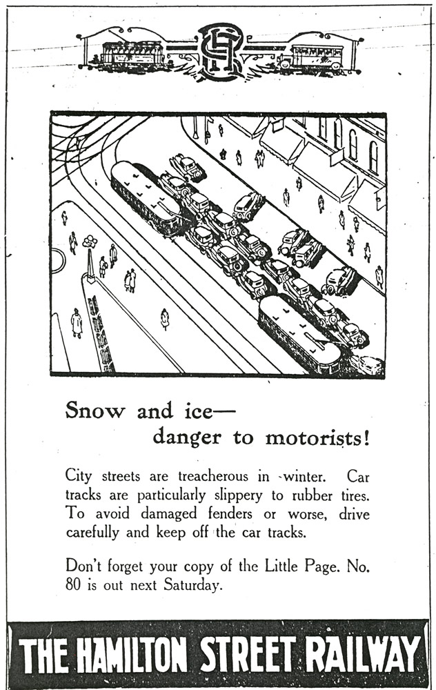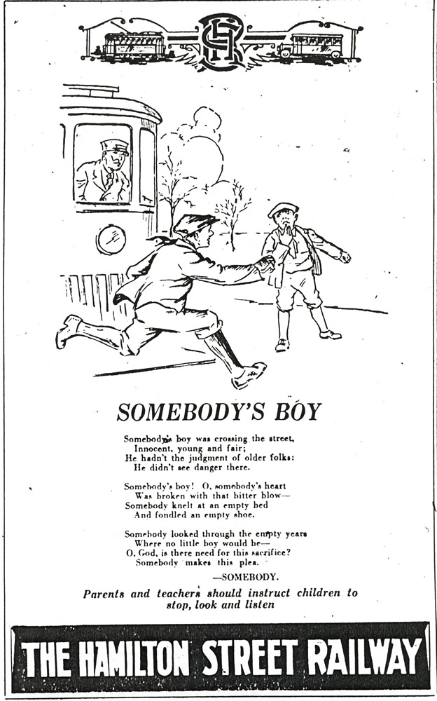These ads were placed in newspapers during the 1920s by the HSR as reminders to passengers and car drivers to be safe and courteous. 80 years later, and some things haven't changed. Special thanks to David Hyslop for providing these.