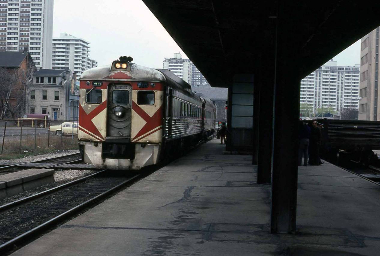 CP #9115 on train 181 at the Hunter St station, April 11, 1981. Running between Toronto and Buffalo, this train would be permanently cancelled on April 23. (Photo by Clayton Langstaff, courtesy of the Railfan.net ABPR Archive, used with permission)