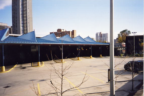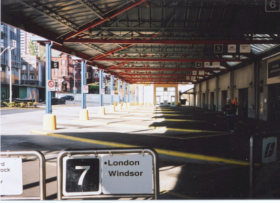 The east bus bays. The first few are used by GO Transit for its buses. The rest of the bays are currently empty.