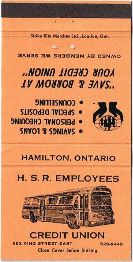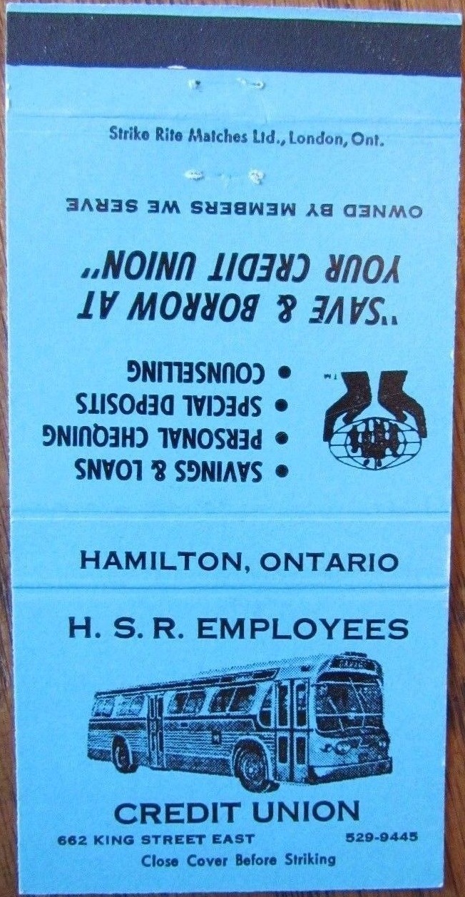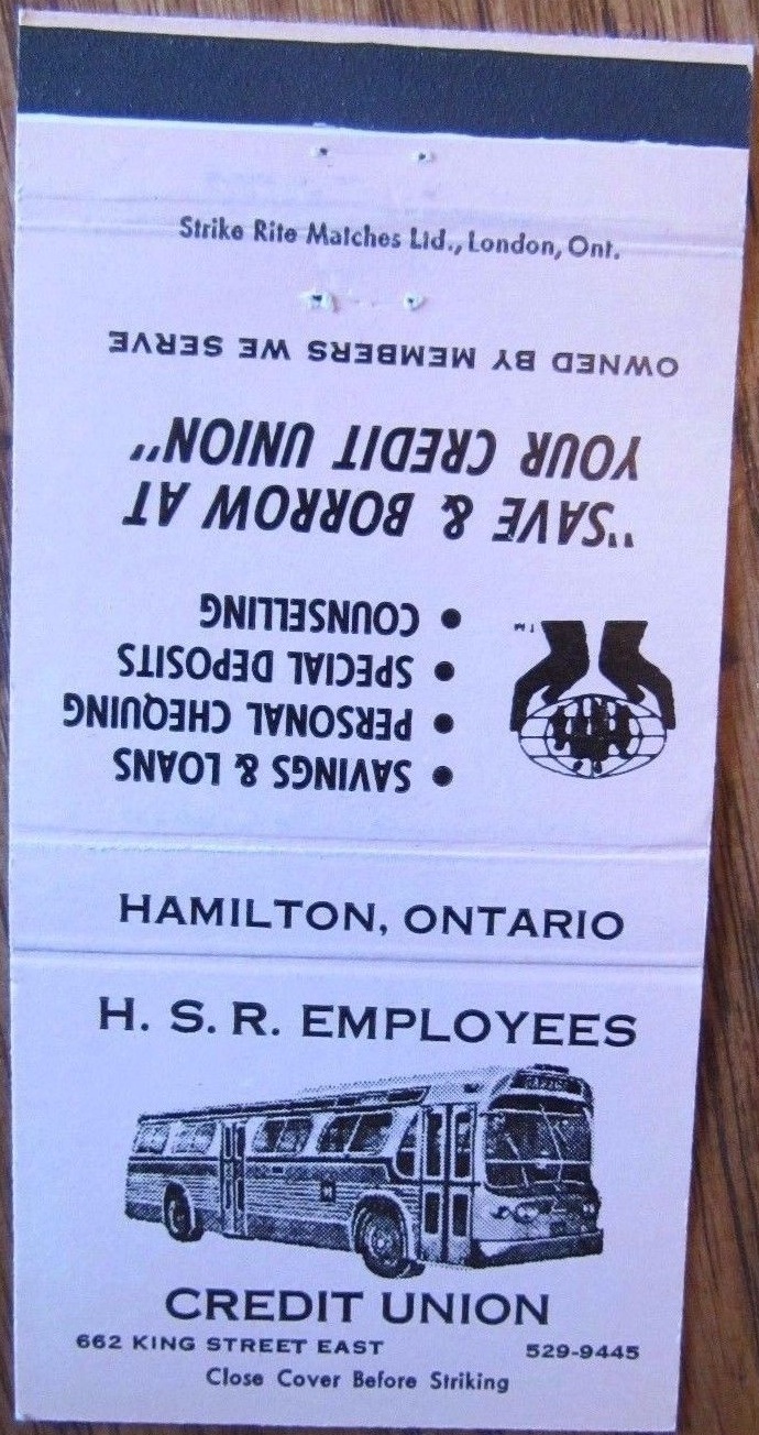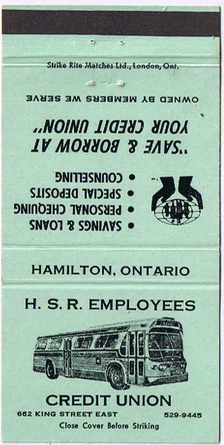 Matchbooks from the HSR Employee's Credit Union. No date, but the bus is an GM TDH-4517 from 1960.
