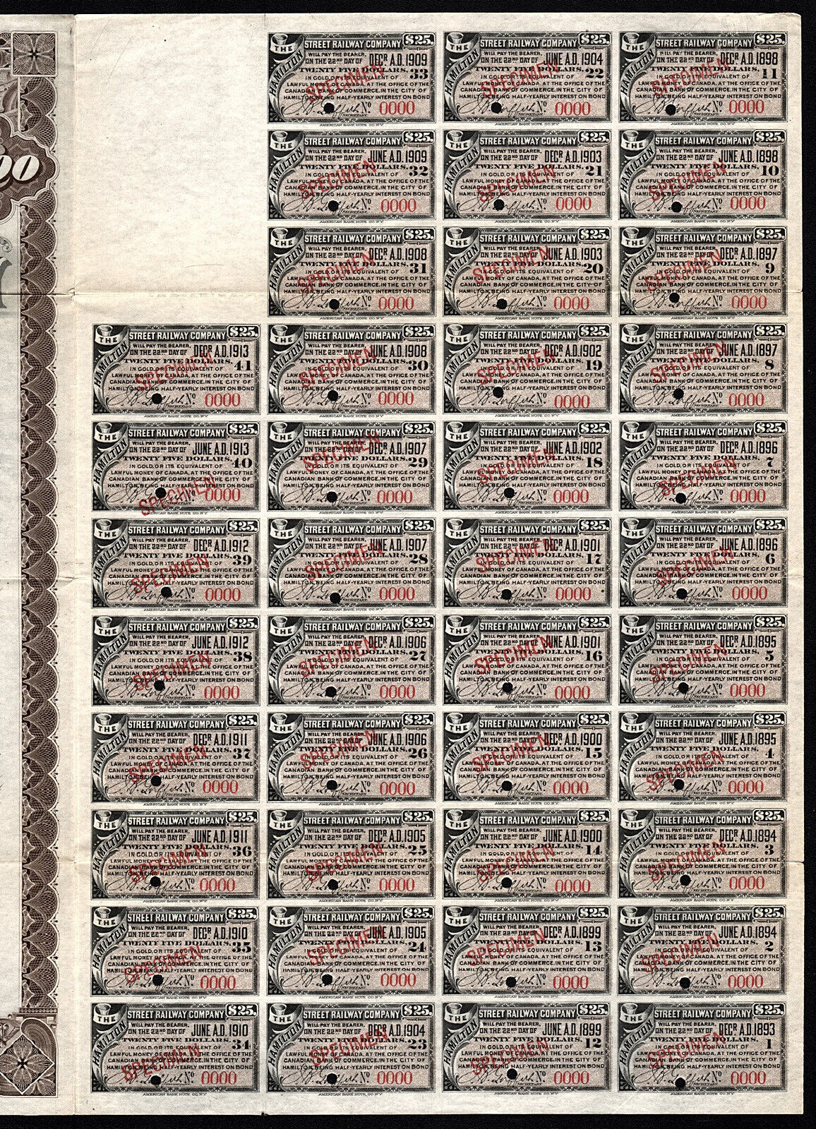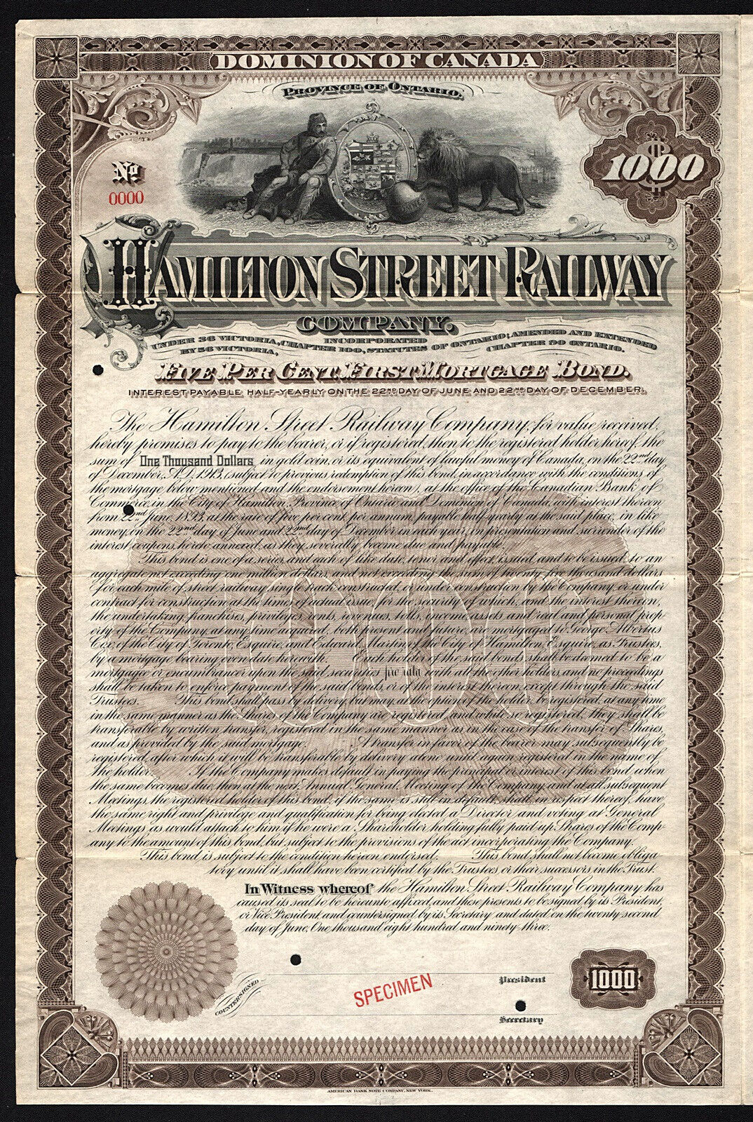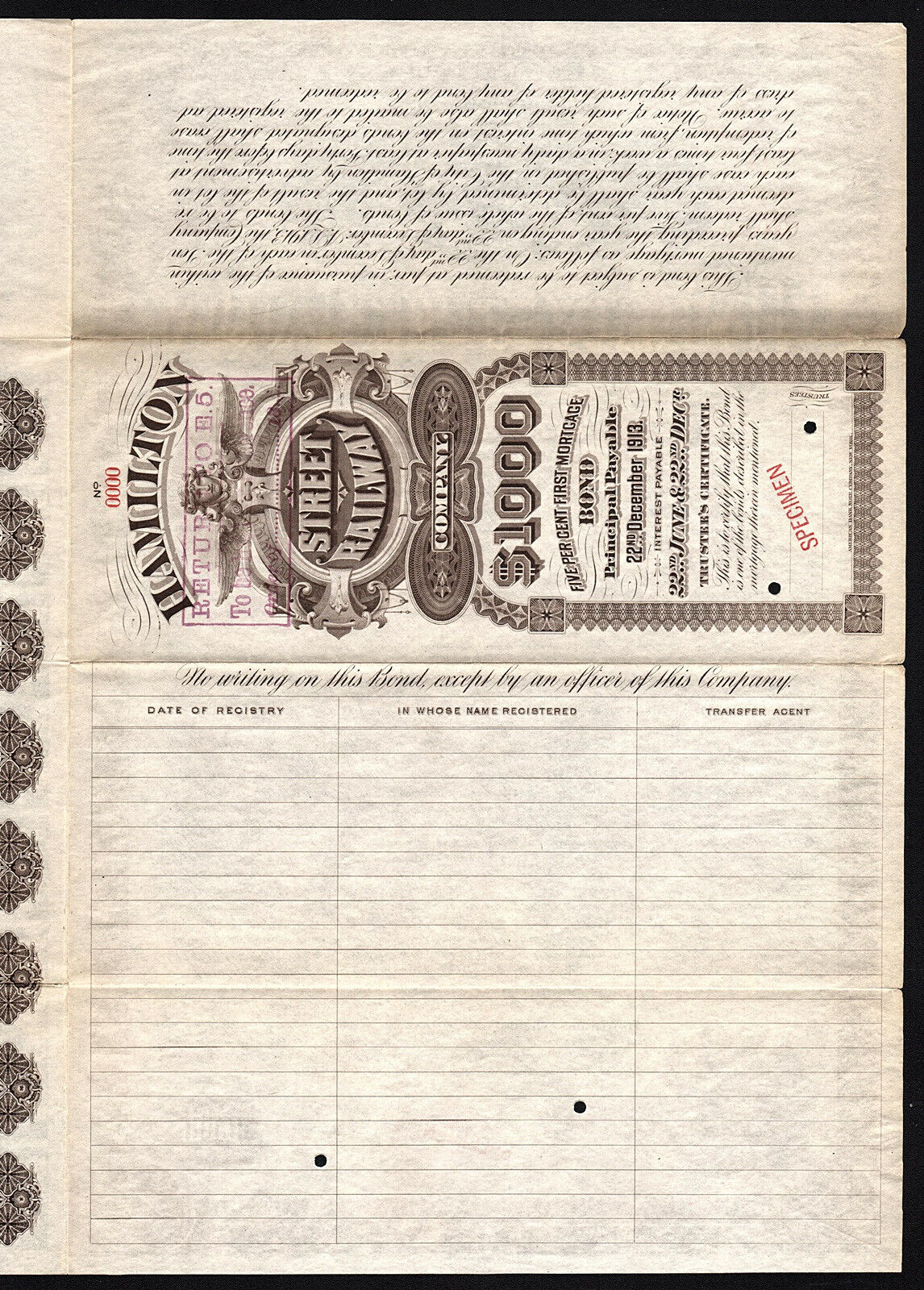 Blank specimen of 1893 $1000 HSR bond