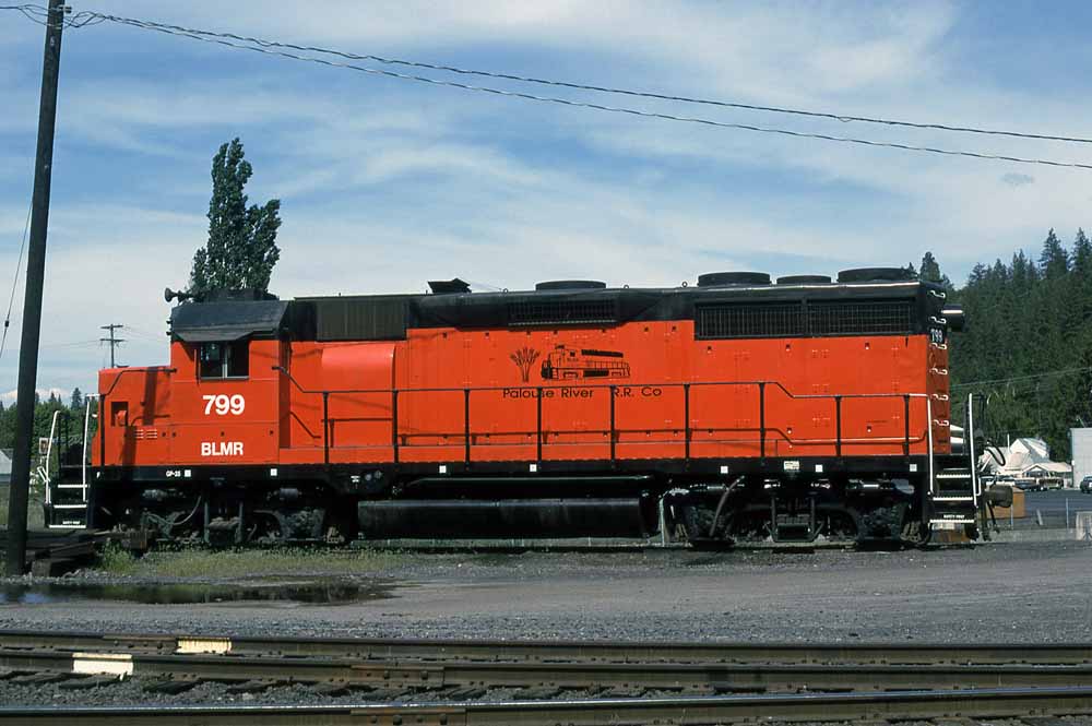 Blue Mountain Railroad #799 at Colfax, Washington, on 23 May 1995, wearing the then more traditional Watco black and orange colors on the railroad's northern operations. Keith E. Ardinger photo. |