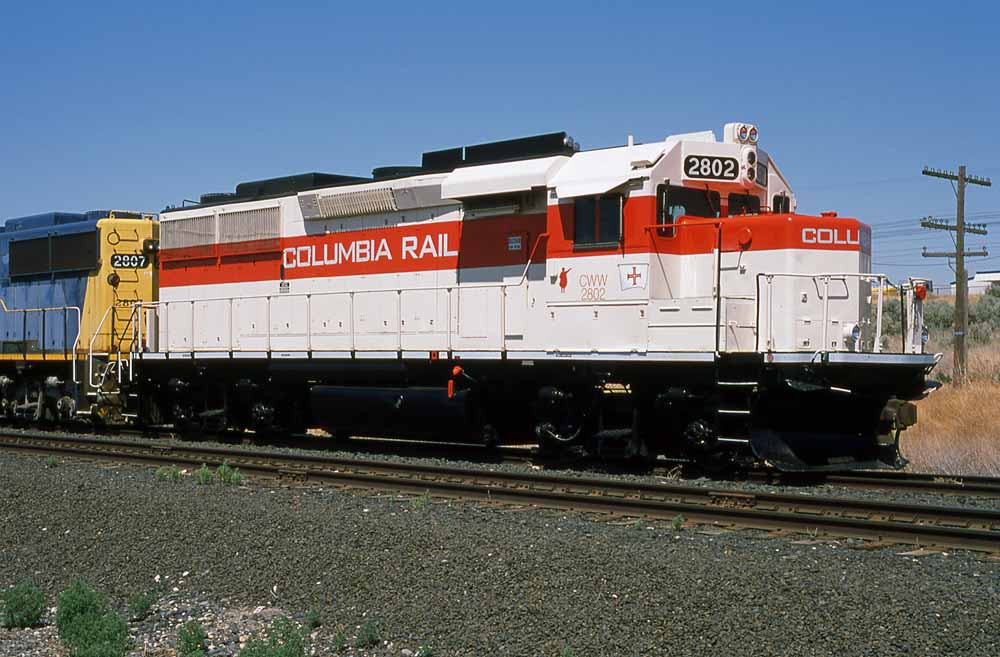 Columbia Rail #2802, a former Alaska Railroad GP49, wearing the company's attractive paint scheme at Wallula. Keith E. Ardinger photo.