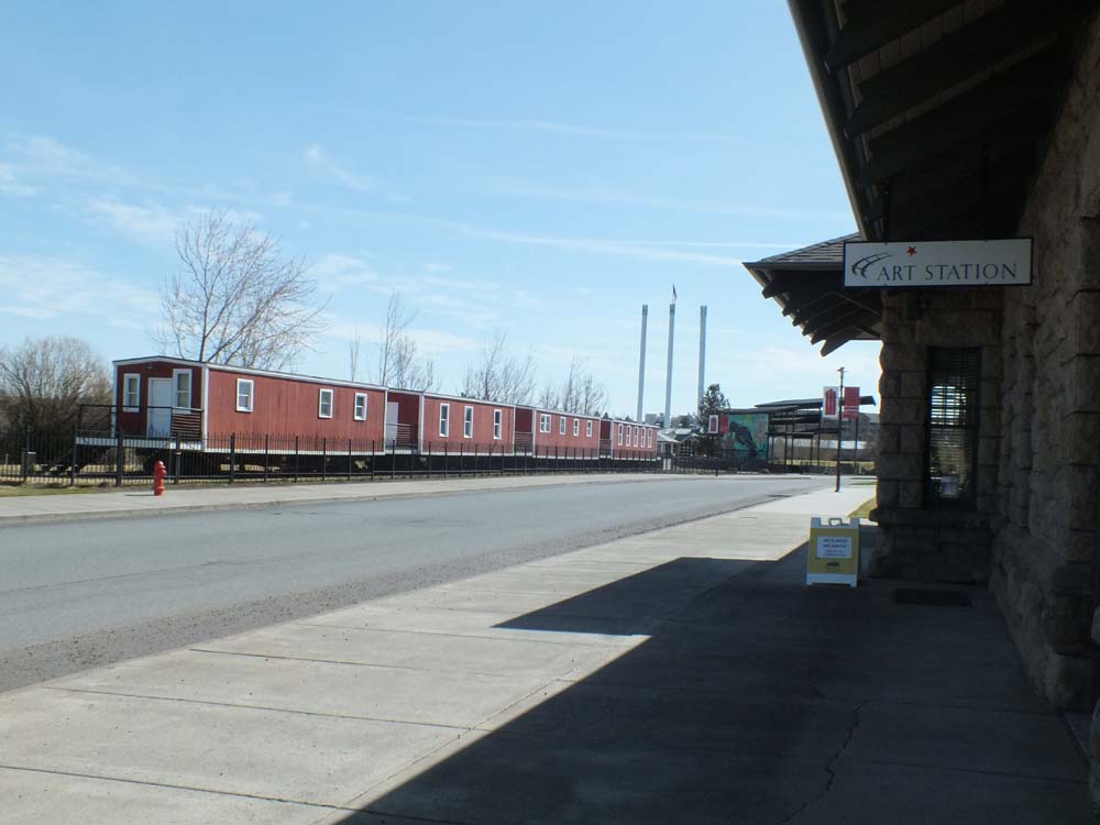 Photos of the four camp cars on the former Shevlin-Hixon sawmill site. One of these cars is built on the frame of a Minnesota & Northwestern flat car used to ship sawmill machinery from Minnesota to Oregon when Brooks-Scanlon first set up operations in Bend. |