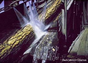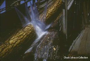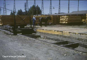 entering the sawmill complex. The log washer cleaned dirt and other accumulated lose debris from each log.