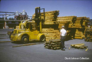 Chuck Johnson's father worked in the Brooks-Scanlon sawmill through a good part of the 1950's. He was able to take his camera into the mill and take these rare photos. All photos are from the Chuck Johnson collection and are used here with permission. |