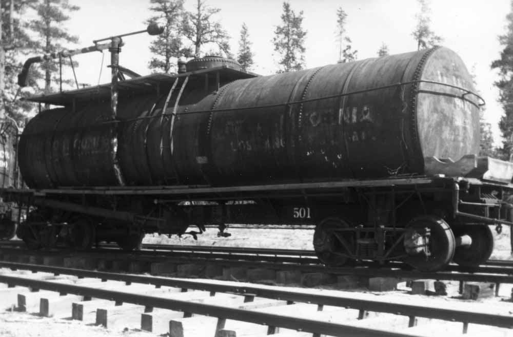 Several tank car bodies remained in use or otherwise stored in the mill long after the railroad vanished. Jerry Lamper collection. |