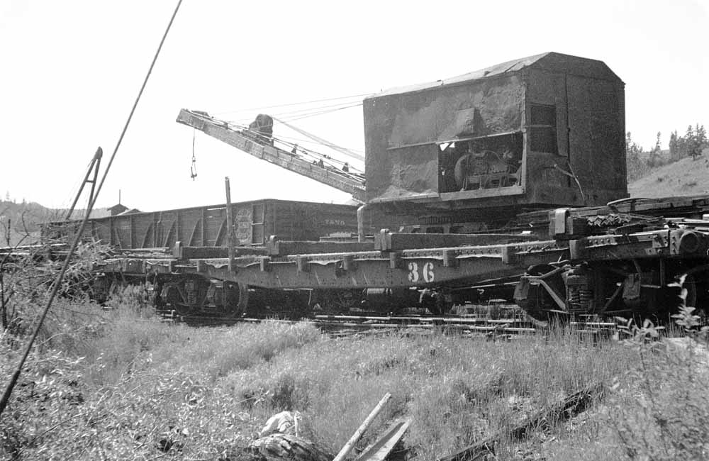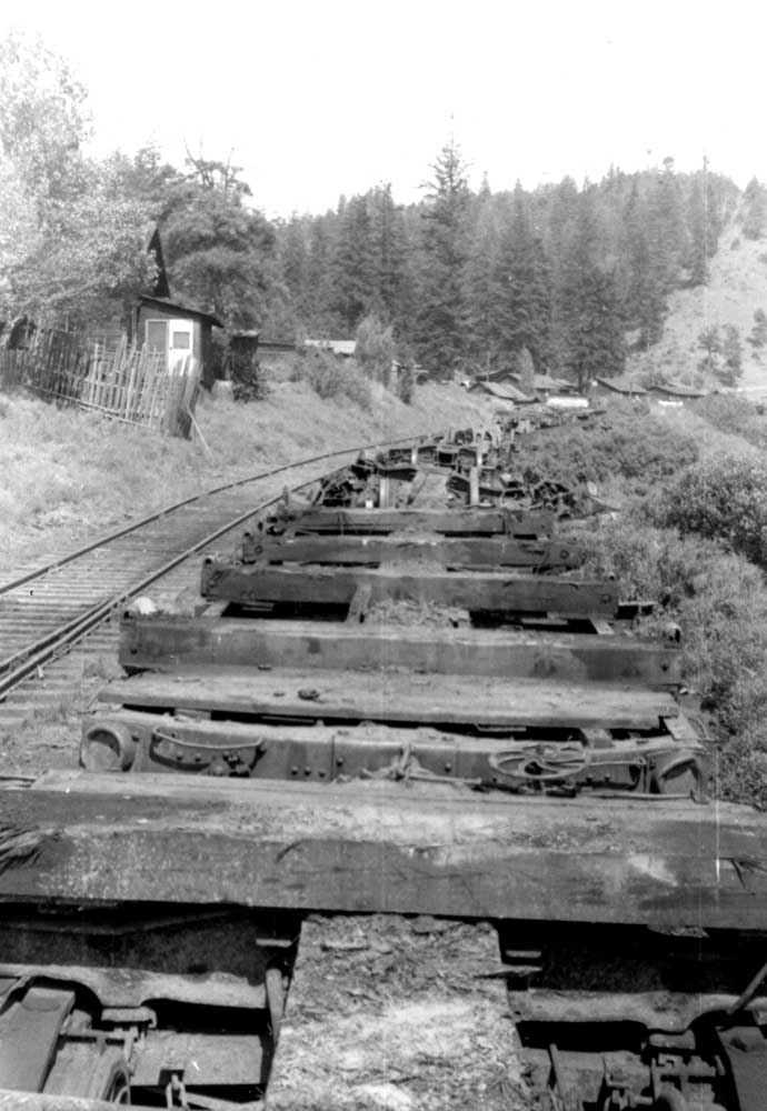 KPM log cars in the process of getting scrapped on 9 June 1951. Ivan Ergish photo, John Henderson collection, courtesy Pacific Northwest Virtual Logging Data Center/Glen Comstock.
