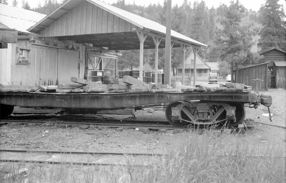 Kinzua Pine Mills moving car. John R. Cummings photo, courtesy Pacific Northwest Virtual Logging Data Center/Glen Comstock.
