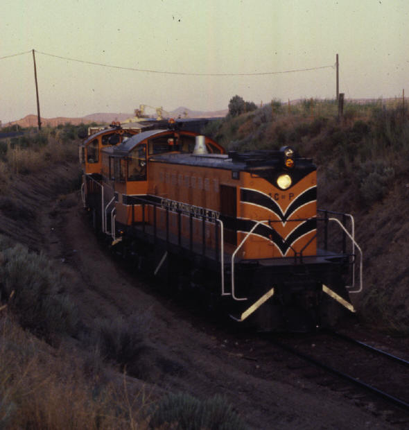 Alcos #102 and #103 switching in the Prineville Yard. Louis K. Thelen photo. |