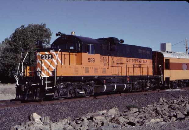 City of Prineville Railroad #989 at Prineville Juntion on 7 September 2001. Sheldon Perry photo. |