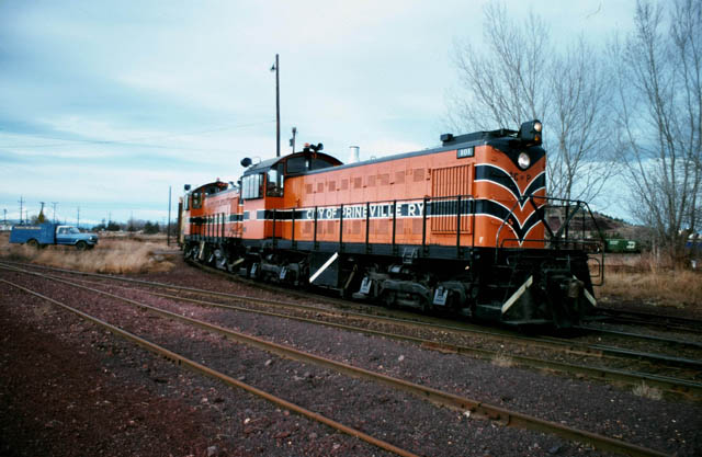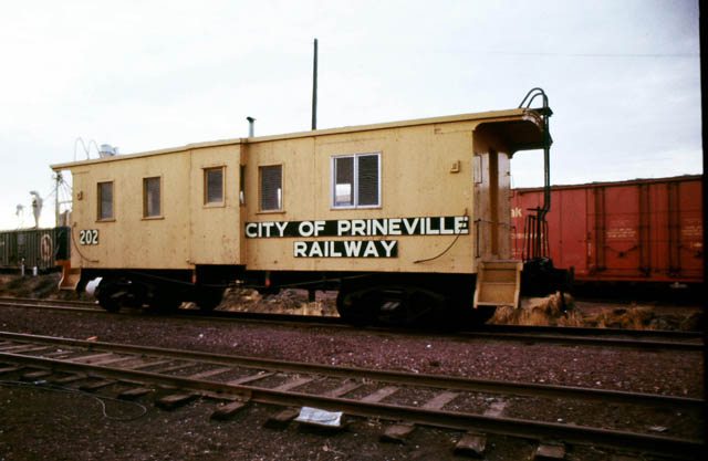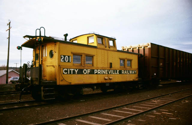 Cliff West sent along these five photos a while back. The first three are of a freight behind two of the Alcos, first at Prineville Junction and then on the way back to Prineville. The final two photos are of cabooses #201 and #202. Cliff West photos, used with permission. |