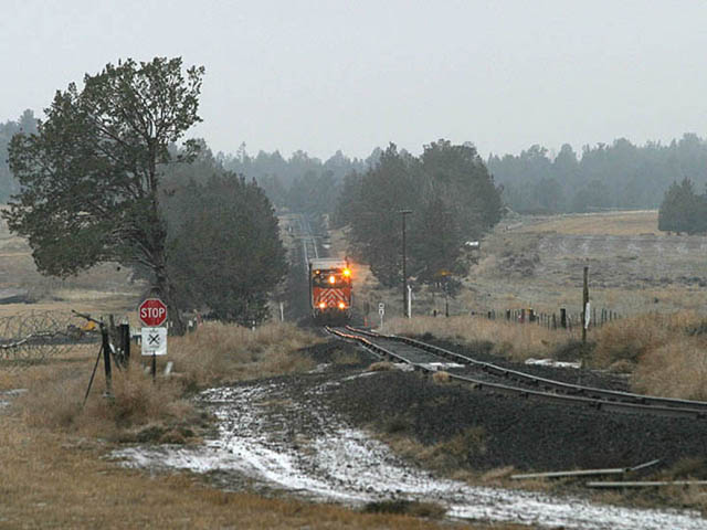 The train entering the western edge of Prineville. |