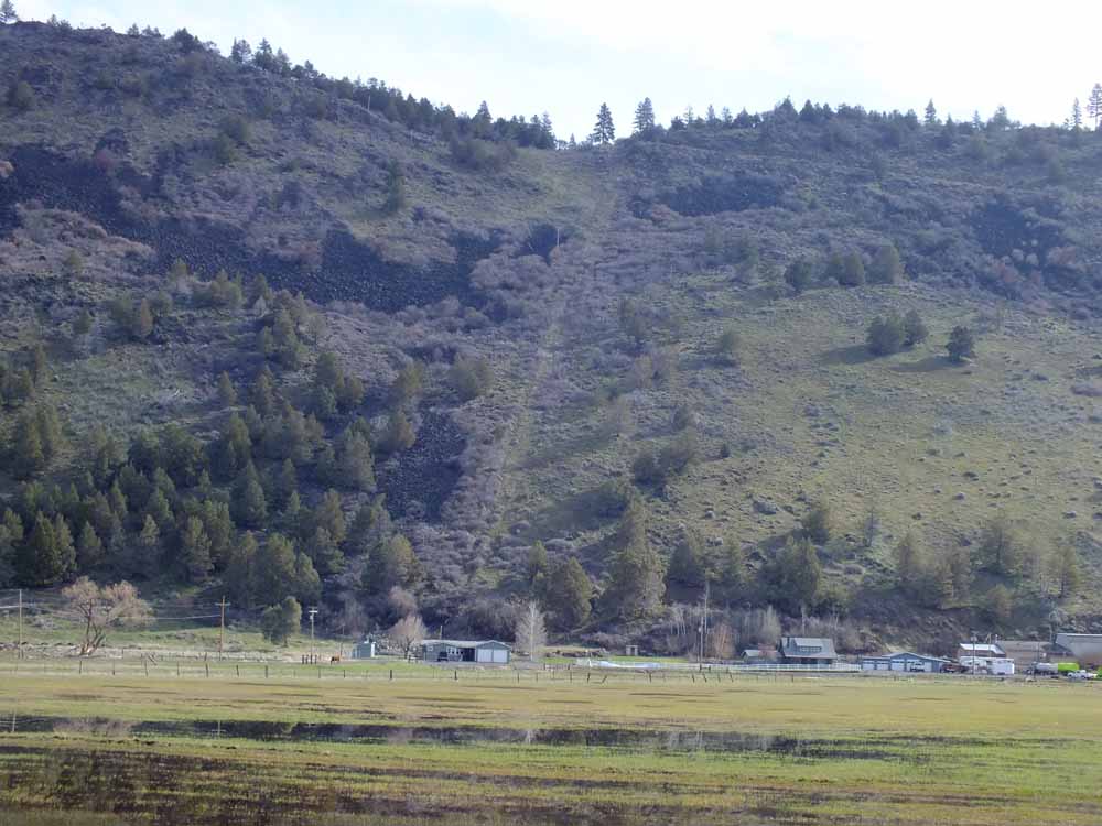 foot of the hill in the foreground, and the incline site is out of view to the right. The fill carrying the Southern Pacific main line cuts through the middle of the photo, and the