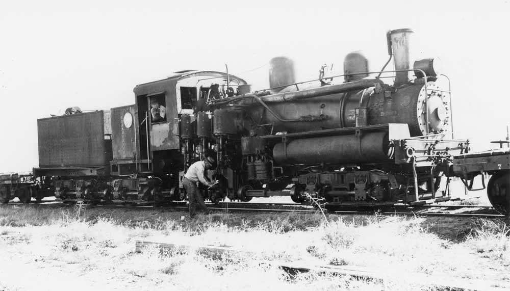 104- Willamette 3-truck, c/n 23, Built 1926. Cylinders 12x15, Drivers 36", Boiler Pressure 200 lbs., Tractive Effort 31,968 lbs., Weight 74 Tons. Purchased new. Transferred to Canby, California, in 1937; to Ralph L. Smith Lumber Company 1943; Scrapped at Canby 1949. |