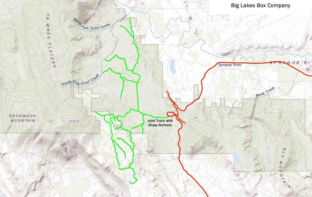 History The Oregon-California Box Company, later renamed Big Lakes Box Company, opened a box plant in Klamath Falls in 1917. The owners added a sawmill next to the box factory in 1920. Big Lakes originally sourced logs from all over southern Oregon and northern California, mostly purchased from third party sources or logged by contractors and then shipped to Klamath Falls by rail over either the Southern Pacific or Oregon, California & Eastern. The situation changed in 1925 when the company acquired the Trout Creek unit of timber on the Klamath Indian Reservation. The unit had originally been sold the prior year to some timbermen out of Spokane, Washington, who had been unable to start operations within the year the contract allocated, and Big Lakes stood ready to pick up the pieces. Big Lake decided to log the timber themselves, a first in the company's history. Big Lakes officials made rapid visits to several operations around the region to learn what they could about the logging side of the industry and then started putting together what they would need for the venture, including track materials, building structures for logging camps, and making other logistical arrangements. Additional acquisitions included six Caterpillar tractors to handle the logging, a McGiffert loader, and a brand new Willamette gear drive steam locomotive. The logging railroad the company built into its timber connected with the Oregon, California & Eastern at Squaw Valley, the first part of which the company built in conjunction with the Shaw-Bertram Lumber Company. Logging operations started in 1926 and lasted until 1937, though that time range included the Depression years when the operation shut down for varying lengths of time on account of the economic conditions. Operations in Oregon ended in 1937, at which time Big Lakes salvaged the railroad and shipped the rails and the locomotive to Canby, California, where they had just taken over an operation there. The McGiffert loader was one exception, as Big Lakes sold it to another Klamath Basin operation. Big Lakes operations at Canby lasted until 1942, when the company sold that operation, but the Klamath Falls mill continued running on logs trucked to it from other sales in the area until the mill closed for good in 1947. |