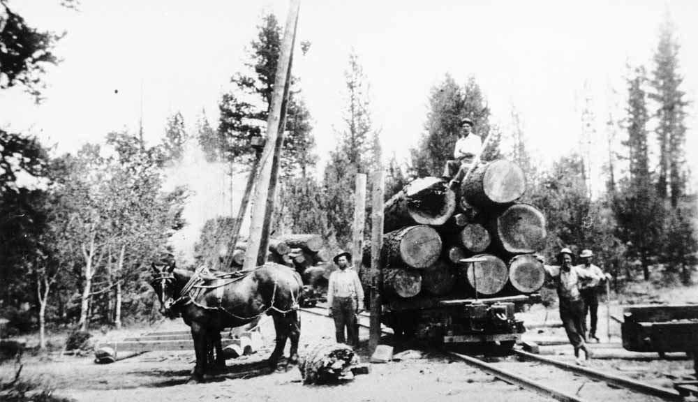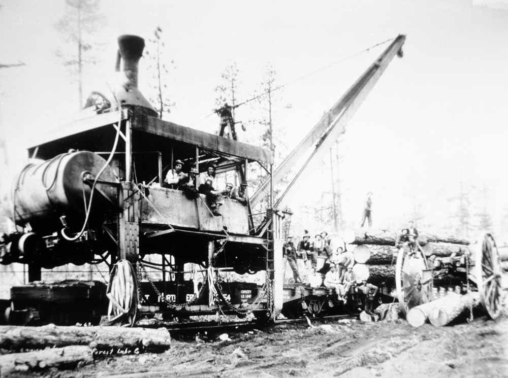 Modoc Lumber/Williamson Logging #1 with a log train. John T. Labbe Collection of Logging and Railroad Photographs, 1892-2010, Washington State Archives,