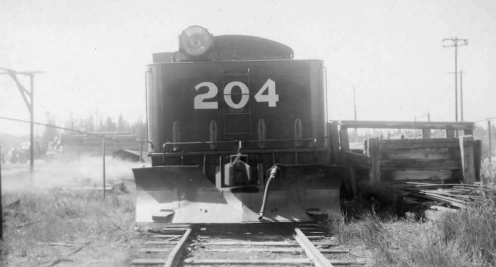 Rear view of the #204 showing the plow mounted on the tender. Jerry Lamper collection. |