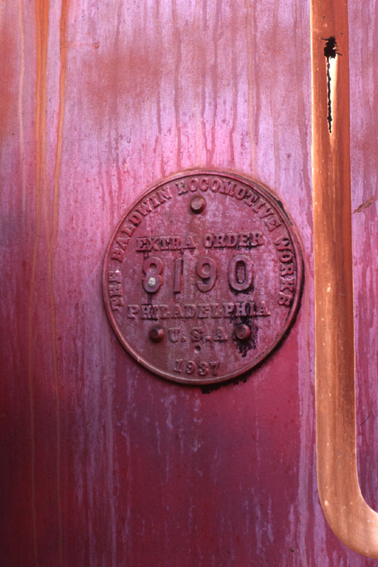 The Baldwin Extra Order plate attached to the tender. John Henderson photo, Jeff Moore collection.