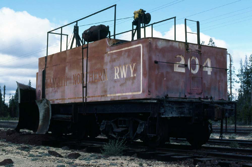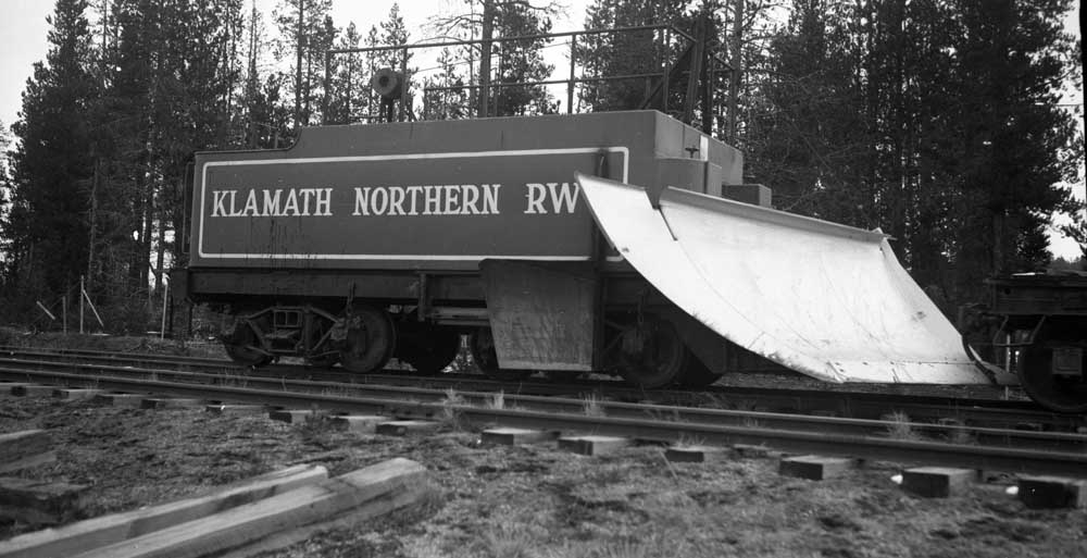 The Klamath Northern has owned very little of its own on-rail equipment except for the locomotives. One of the few pieces the company has owned is this snowplow. The railroad initially used a plow blade mounted on a flatcar, which they replaced with the tender from the #204 converted to a plow after they scrapped the locomotive. |