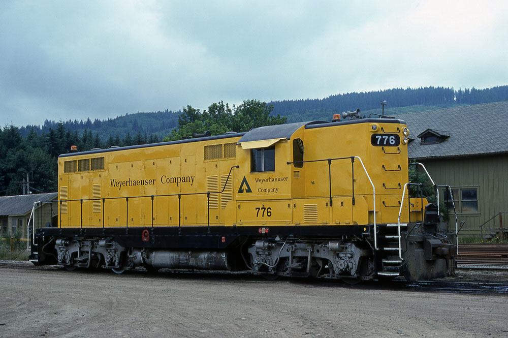 Four years after the diesel arrived in Washington Weyerhaeuser consolidated its operations with trackage purchased from the abandoning Milwaukee Road into the Chehalis Western. The company relettered the #776 to match the name change. J.M. Seidl image, Western Junction, Washington, 26 May 1983. |